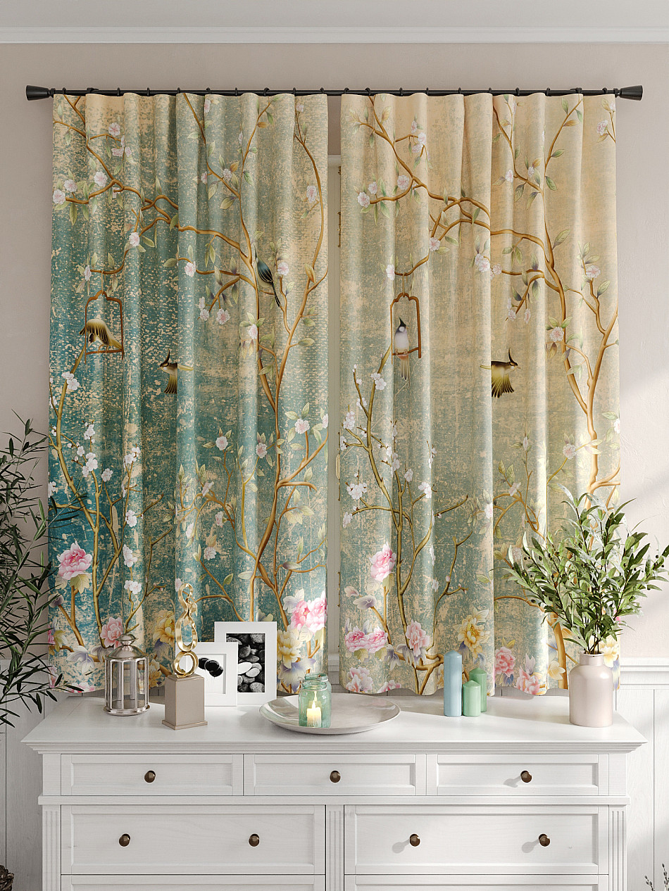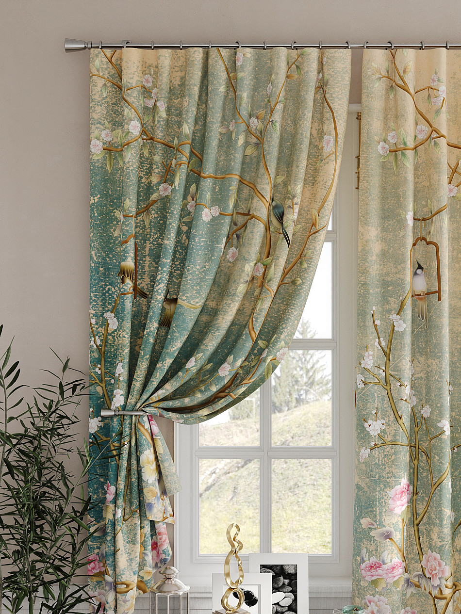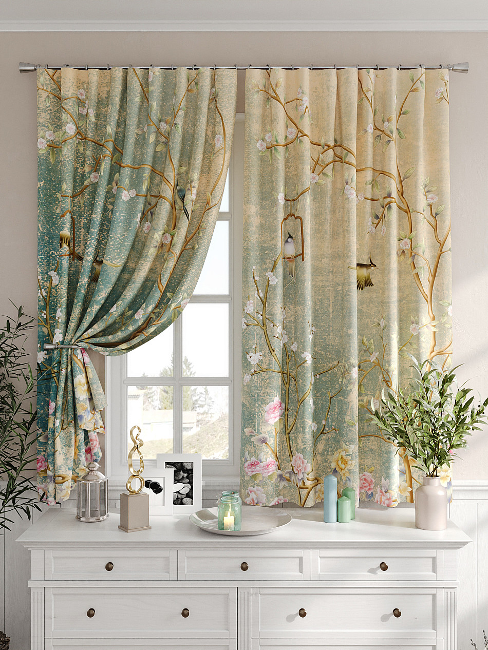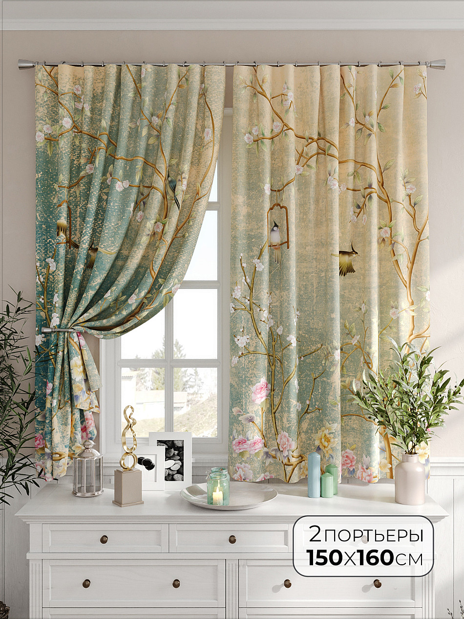 Портьеры 2 шт. Комплект штор из легкой портьерной ткани (габардин) оформлен печатным рисунком. Печатный рисунок дает широкие возможности обновить интерьер фактически не требуя ремонта за счет огромного выбора. Ткани с печатным рисунком безопасны и не содержат токсичных веществ. Не смотря на то, что материал легкий, он имеет высокую плотность, мало загрязнятся и не требует особого ухода даже после стирки, что важно для кухонных занавесок. Шторы не выцветают, не растягиваются, превосходно драпируются, образуя струящиеся складки. Прекрасное решение для создания красоты и уюта с помощью уникальных дизайнов.