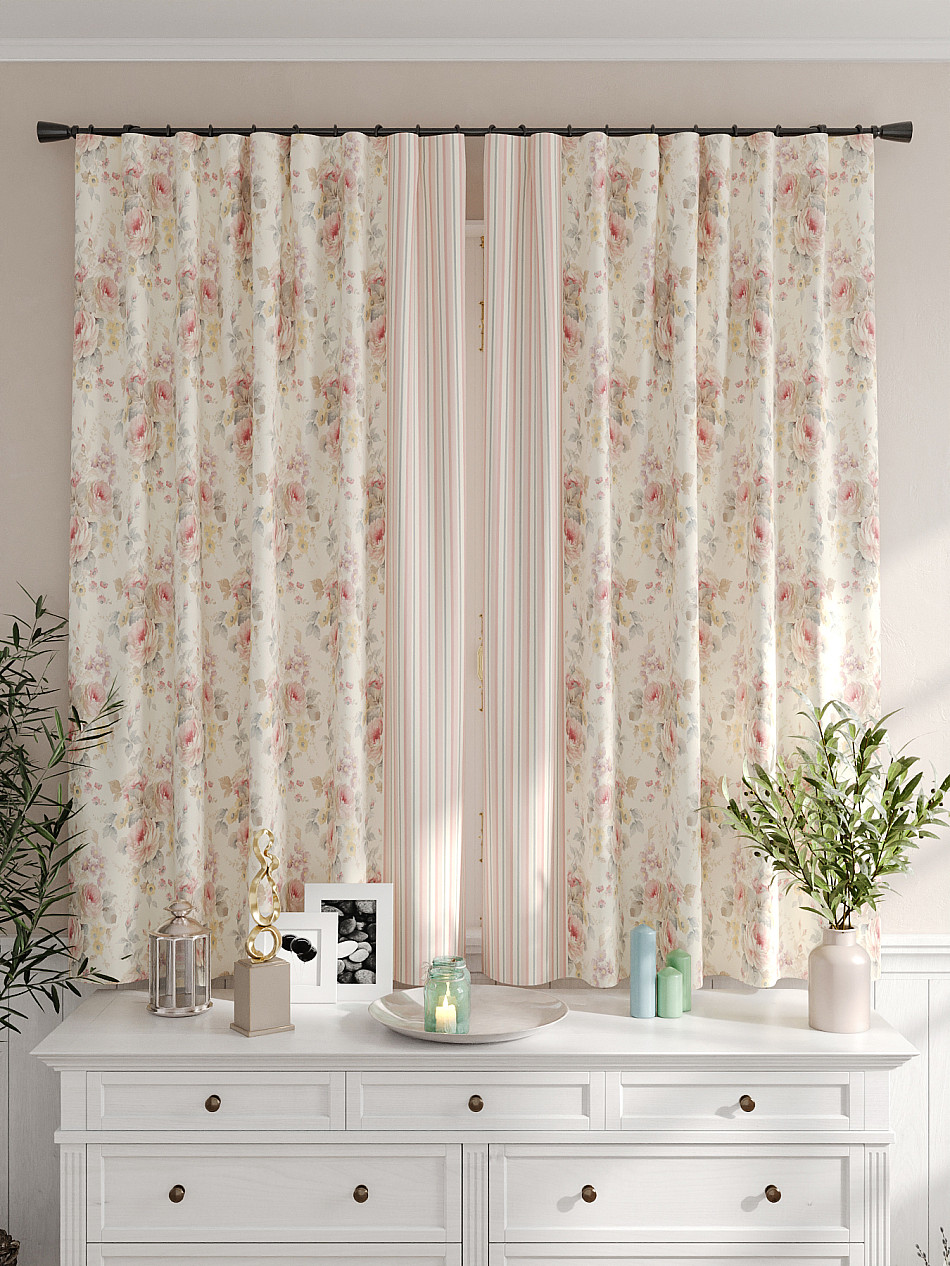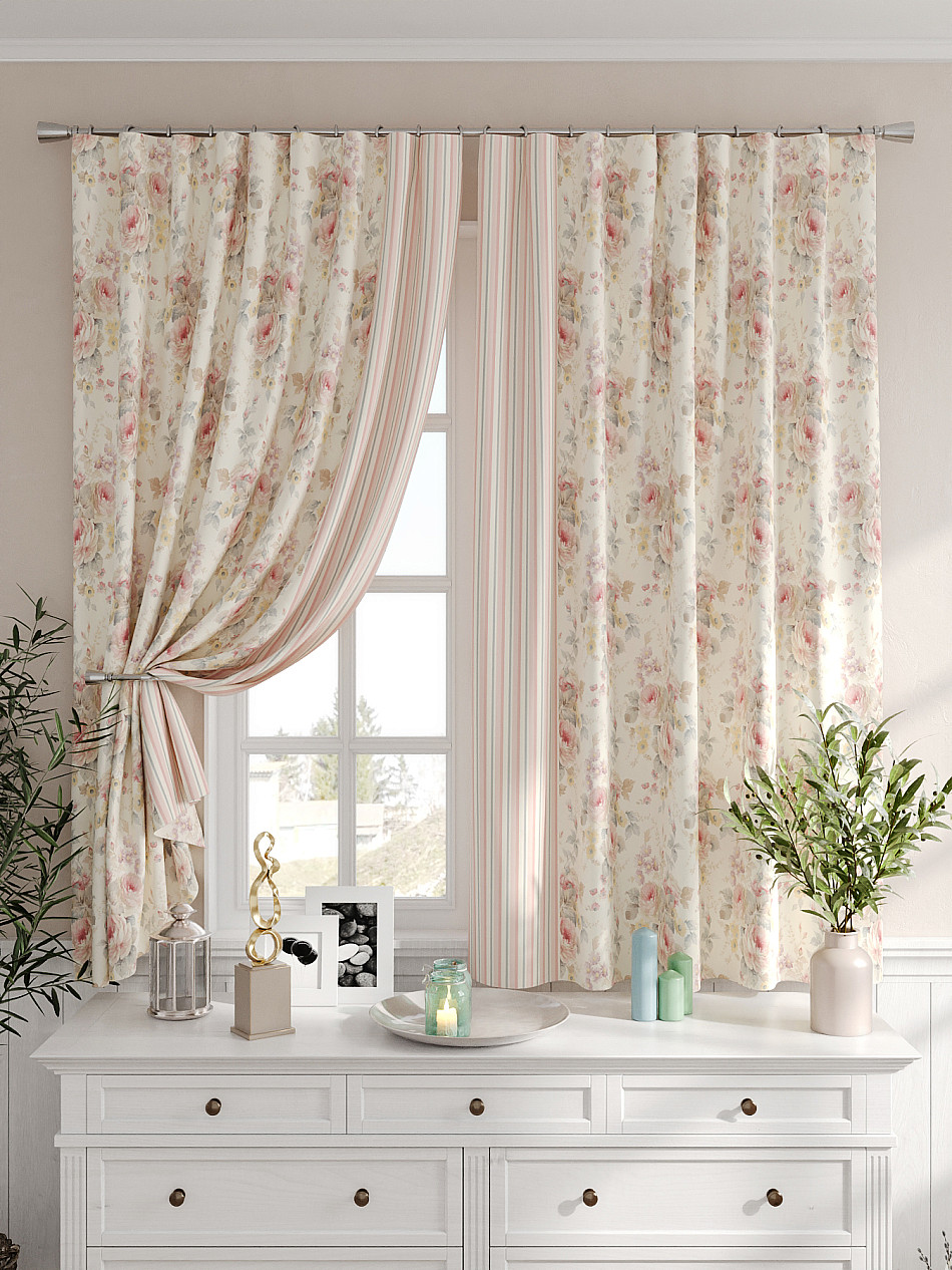 Портьеры 2 шт. Комплект штор из легкой портьерной ткани (габардин) оформлен печатным рисунком. Печатный рисунок дает широкие возможности обновить интерьер фактически не требуя ремонта за счет огромного выбора. Ткани с печатным рисунком безопасны и не содержат токсичных веществ. Не смотря на то, что материал легкий, он имеет высокую плотность, мало загрязнятся и не требует особого ухода даже после стирки, что важно для кухонных занавесок. Шторы не выцветают, не растягиваются, превосходно драпируются, образуя струящиеся складки. Прекрасное решение для создания красоты и уюта с помощью уникальных дизайнов.
