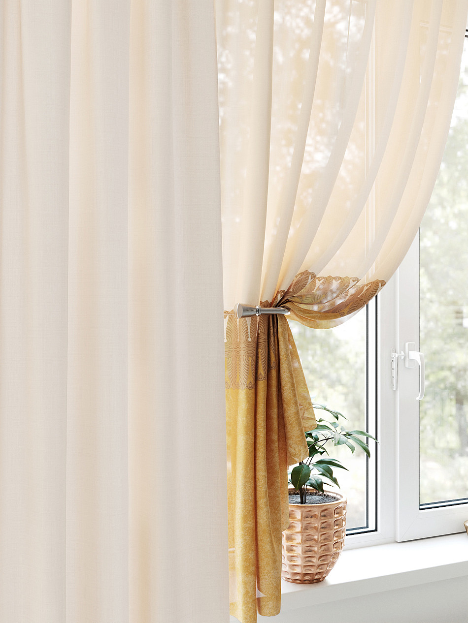 Портьера 1 шт. Подхват - доп.услуга. Комплект для интерьера с балконной дверью, состоит из легкой портьеры для двери и тюли для окна. Оригинальная ассиметричная конструкция оживит любое помещение. Красивая одиночная портьера украсит балконный проём и обеспечит удобный доступ к двери. Легкая вуаль с пышными складками создаст воздушный образ окна и защитит от прямых солнечных лучей, мягко рассеивая свет.