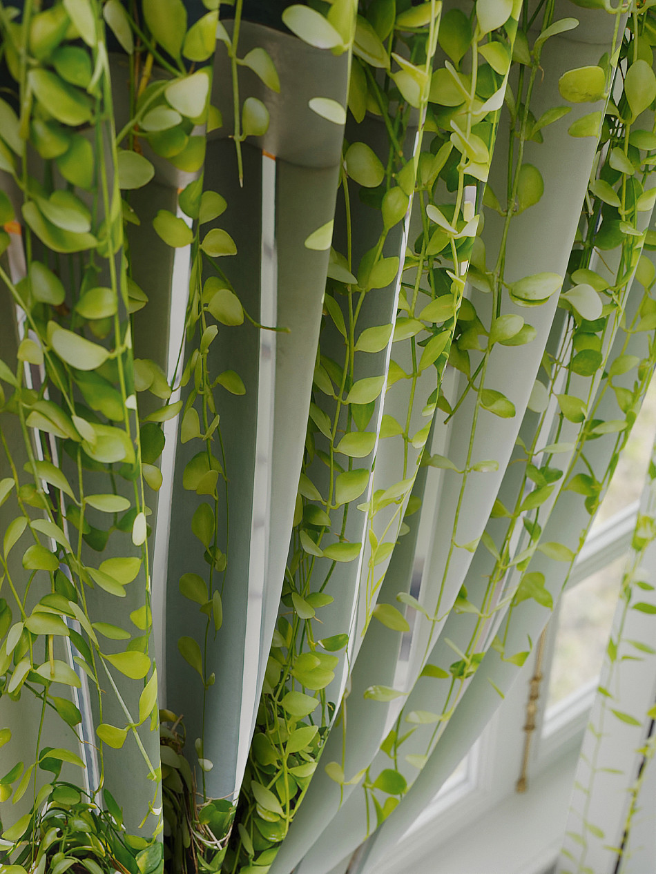По верхнему краю портьер пришита шторная тесьма 6 см, с ее помощью затянув узелки от кордовых нитей с обеих сторон и стянув их до нужного размера можно сформировать округлые складки, далее вставить крючки в кармашки и повесить на карниз. Обязательно проверьте кордовые нити – они должны быть надежно завязаны, в противном случае во время стягивания они могут вылететь. Шторная тесьма имеет два ряда кармашков, с их помощью можно регулировать не только длину, но и ширину. Такое крепление подходит для всех типов карнизов.