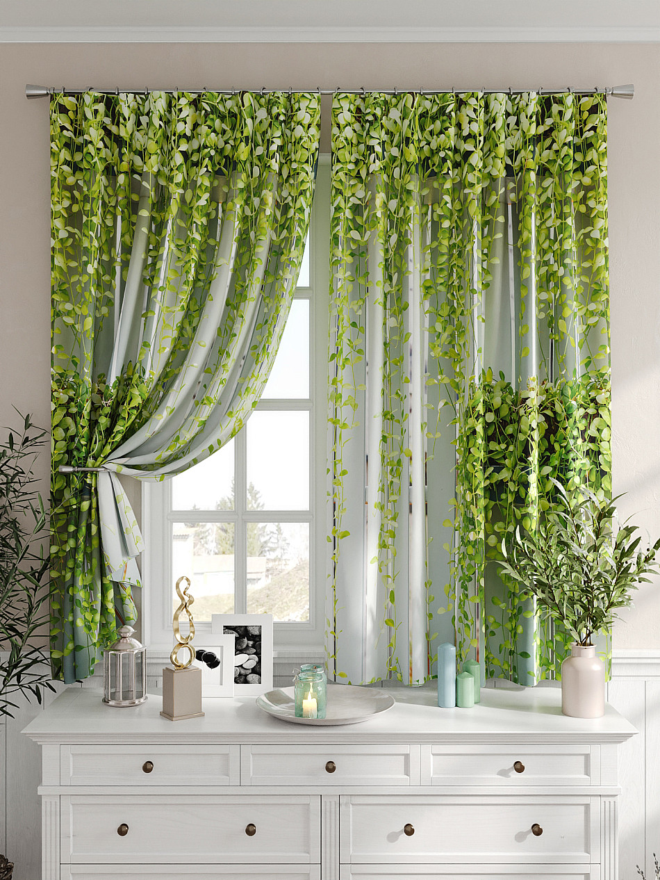 Портьеры 2 шт. Комплект штор из легкой портьерной ткани (габардин) оформлен печатным рисунком. Печатный рисунок дает широкие возможности обновить интерьер фактически не требуя ремонта за счет огромного выбора. Ткани с печатным рисунком безопасны и не содержат токсичных веществ. Не смотря на то, что материал легкий, он имеет высокую плотность, мало загрязнятся и не требует особого ухода даже после стирки, что важно для кухонных занавесок. Шторы не выцветают, не растягиваются, превосходно драпируются, образуя струящиеся складки. Прекрасное решение для создания красоты и уюта с помощью уникальных дизайнов.