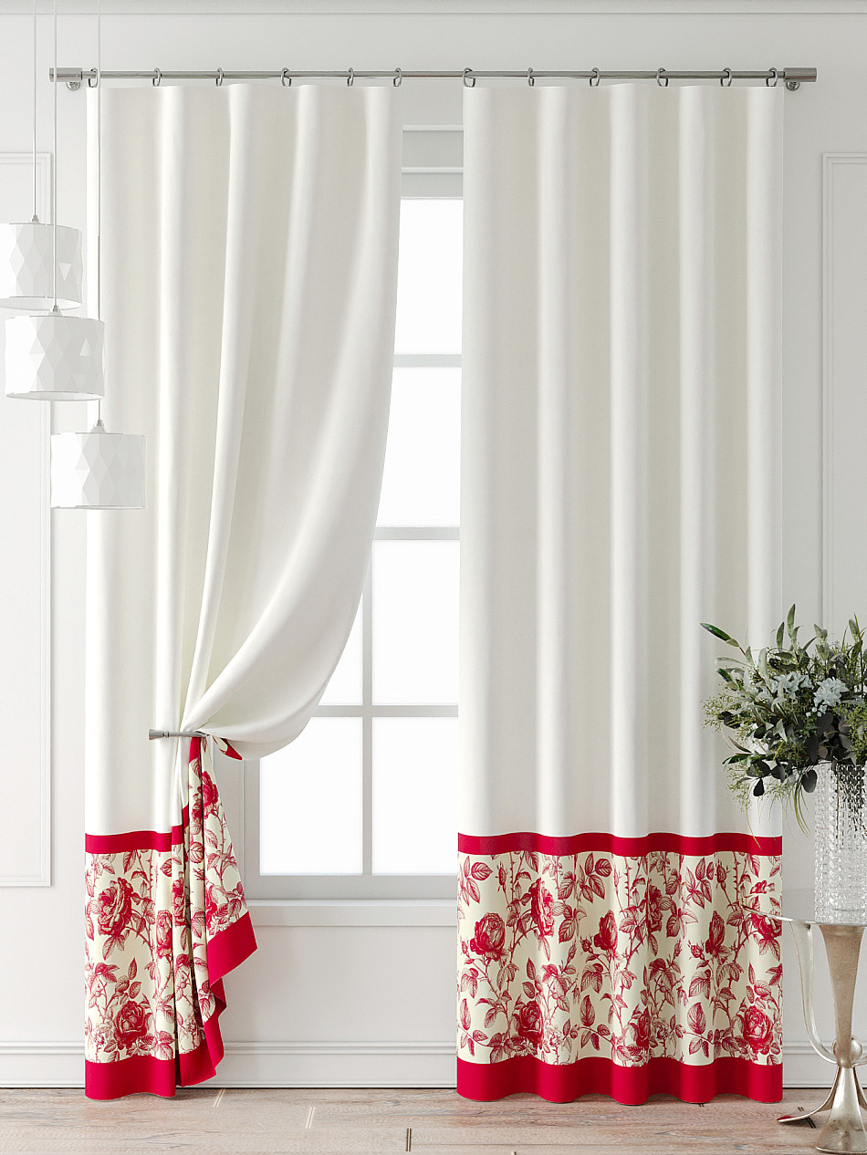 По верхнему краю портьер пришита шторная тесьма 6 см, с ее помощью затянув узелки от кордовых нитей с обеих сторон и стянув их до нужного размера можно сформировать округлые складки, далее вставить крючки в кармашки и повесить на карниз. Обязательно проверьте кордовые нити – они должны быть надежно завязаны, в противном случае во время стягивания они могут вылететь. Шторная тесьма имеет два ряда кармашков, с их помощью можно регулировать не только длину, но и ширину. Такое крепление подходит для всех типов карнизов.