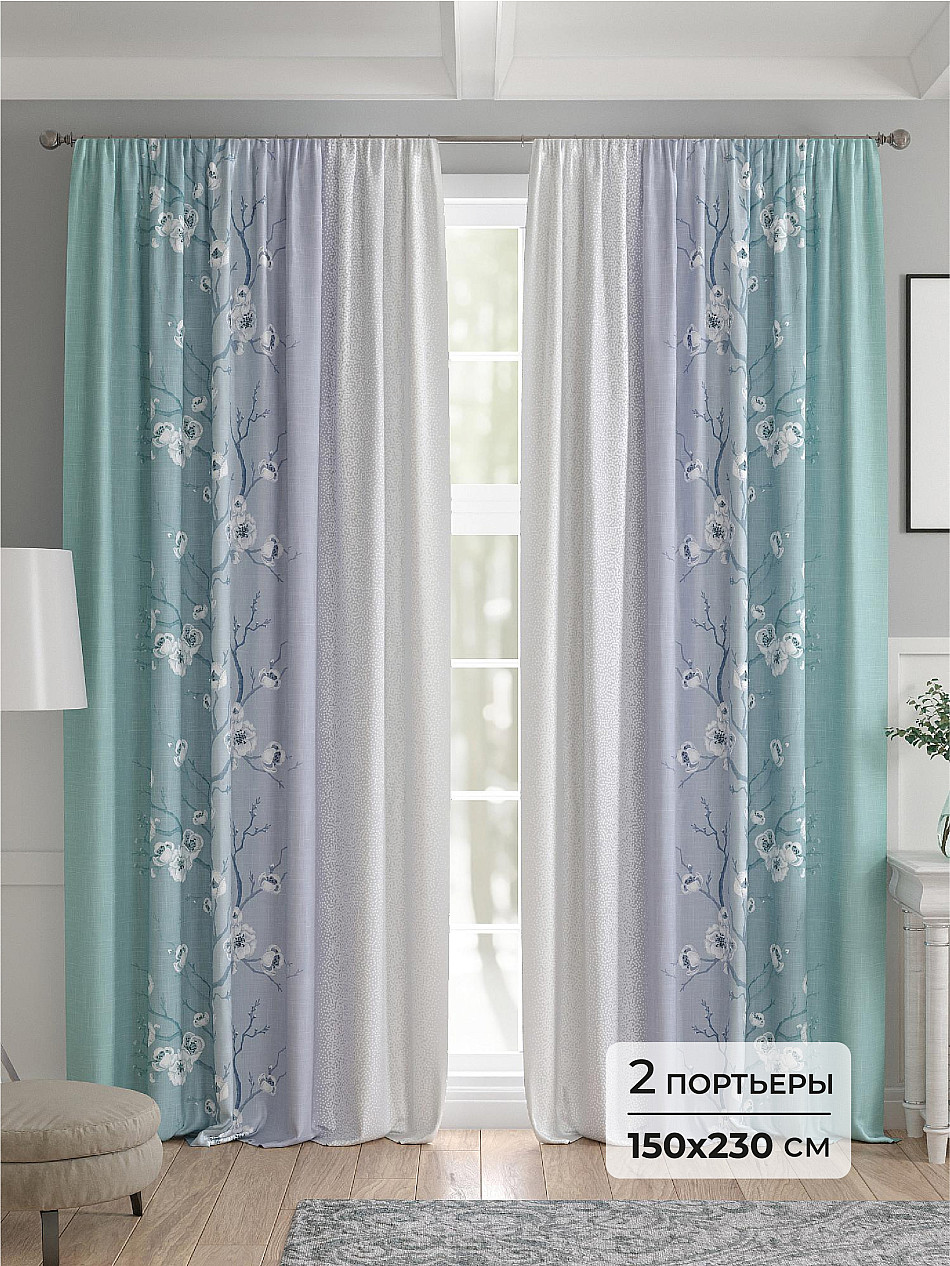 Ширина портьер без сборки 150 см, высота 230 см.