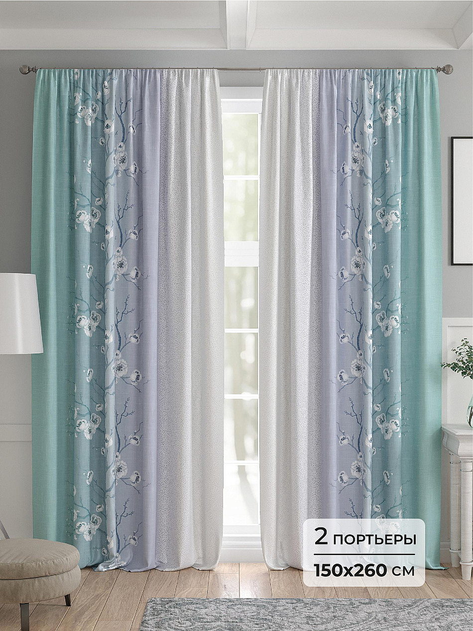 Портьера 150х260 см — 2 шт. ( Изменить высоту) Крепление: шторная лента (крючки), кулиска Подробнее