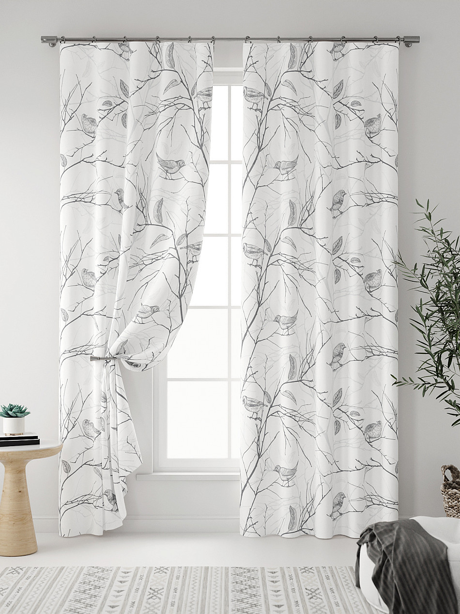 Комплект штор из легкой портьерной ткани (габардин) оформлен печатным рисунком. Печатный рисунок дает широкие возможности обновить интерьер фактически нет требуя ремонта за счет огромного выбора. Ткани с печатным рисунком безопасны и не содержат токсичных веществ. Не смотря на то что, материал легкий, он имеет высокую плотность, мало загрязнятся и не требует особого ухода даже после стирки, что важно для кухонных занавесок. Шторы не выцветают, не растягиваются, превосходно драпируются, образуя струящиеся складки. Прекрасное решение для создания красоты и уюта с помощью уникальных дизайнов.
