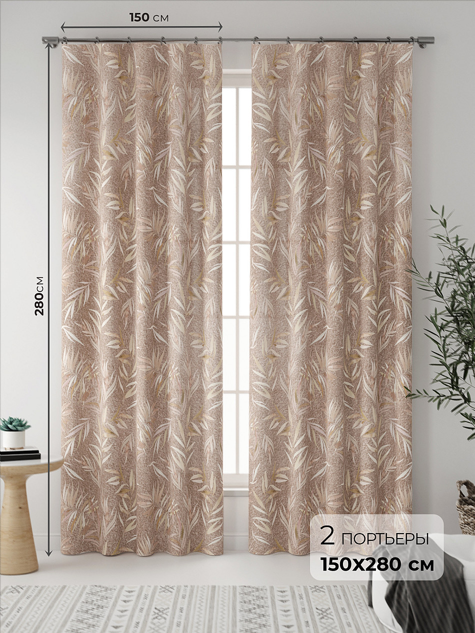 Портьера 150х280 см. — 2 шт. ( Уменьшить высоту ) Крепление: шторная лента (крючки), кулиска Подробнее