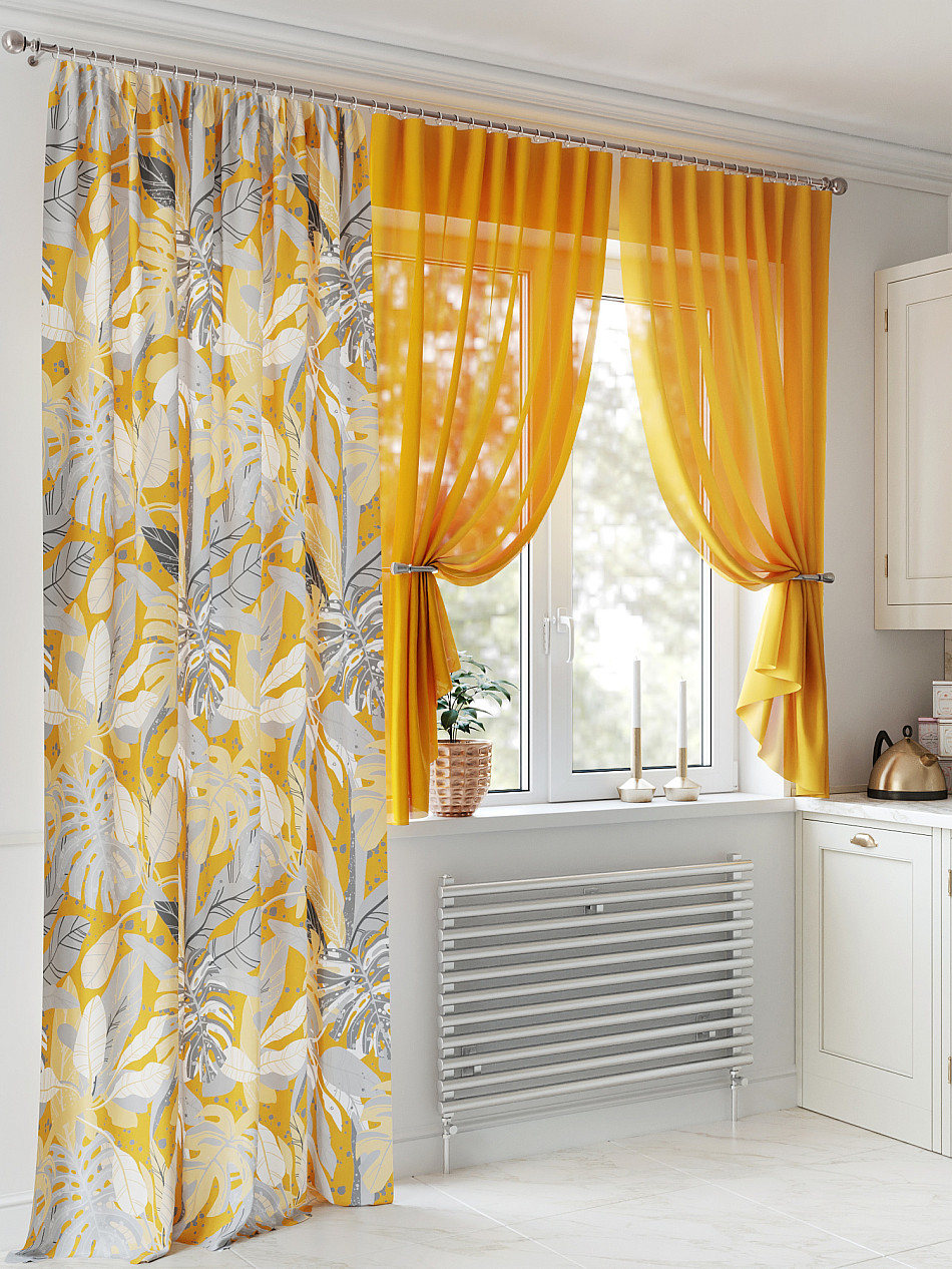 - Состав комплекта Портьера 150х250 см — 1 шт., вуаль 150х180 см — 2 шт.