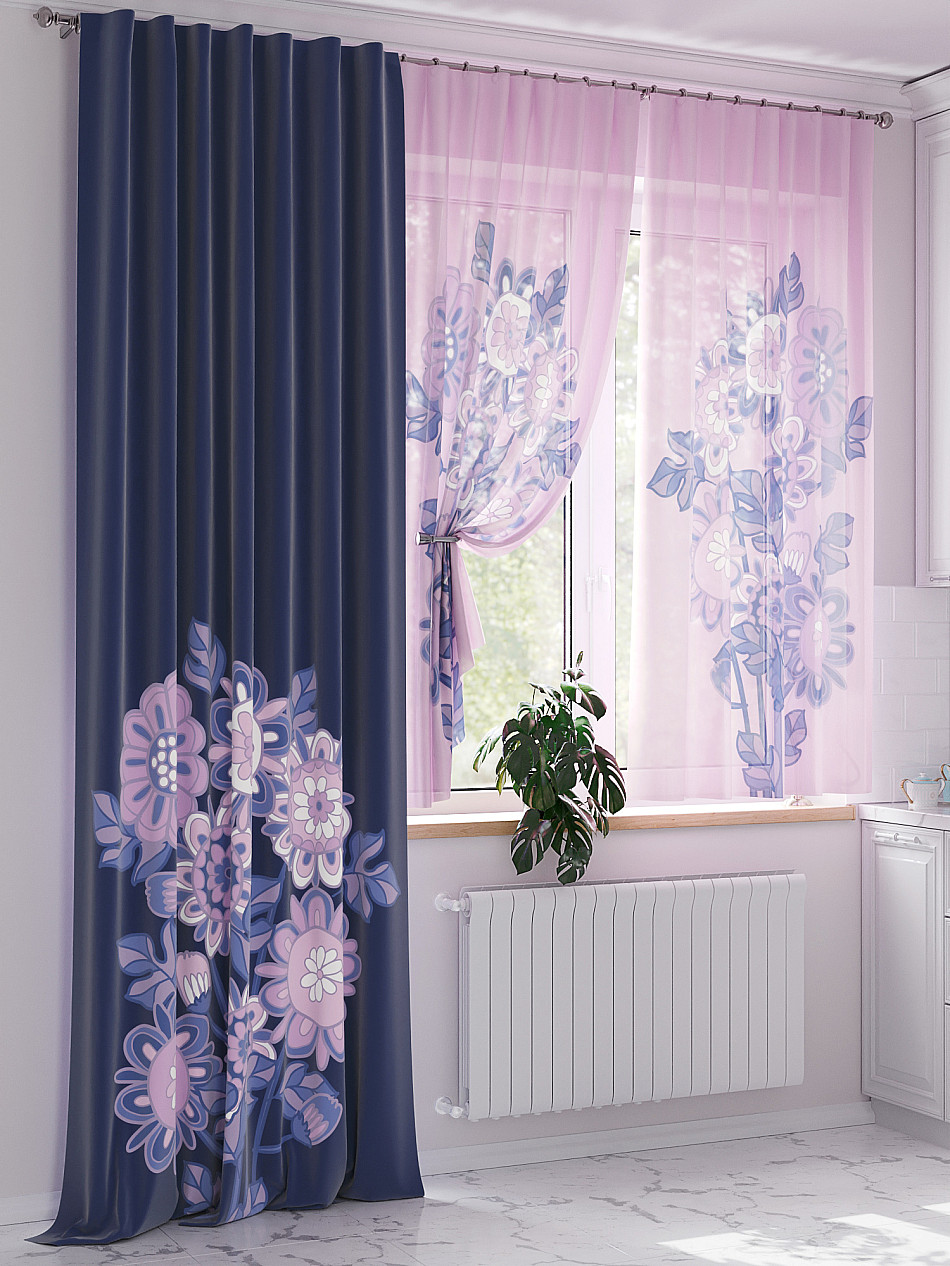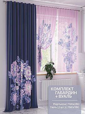 Портьера 150х280 см. — 1 шт., вуаль 150х180 см — 2 шт. ( Уменьшить высоту ) Подробнее