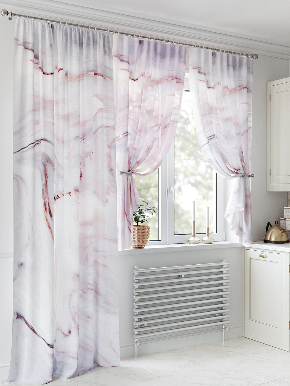 Портьера 1 шт. Подхват - доп.услуга. Комплект для интерьера с балконной дверью, состоит из легкой портьеры для двери и тюли для окна. Оригинальная ассиметричная конструкция оживит любое помещение. Красивая одиночная портьера украсит балконный проём и обеспечит удобный доступ к двери. Легкая вуаль с пышными складками создаст воздушный образ окна и защитит от прямых солнечных лучей, мягко рассеивая свет.
