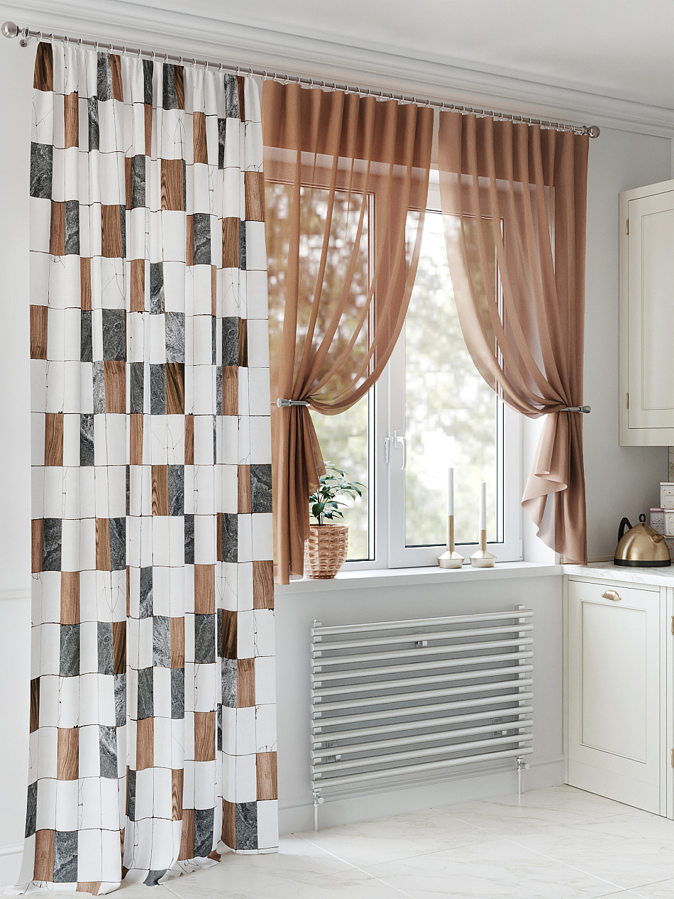 - Вуаль портьеры для кухни с принтом