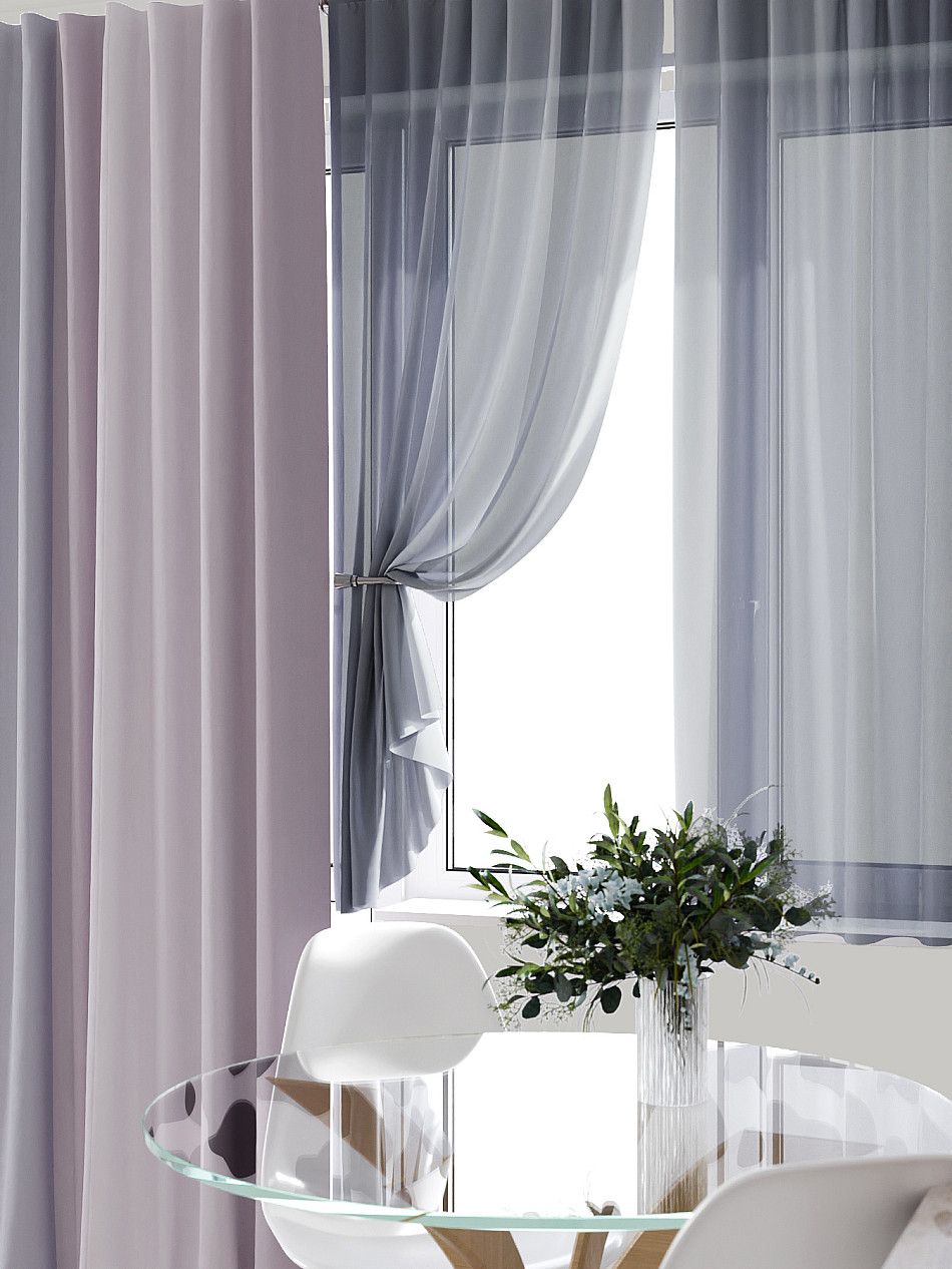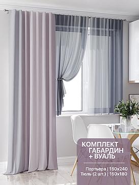Портьера 150х240 см — 1 шт., вуаль 150х180 см — 2 шт. ( Уменьшить высоту ) Крепление: шторная лента (крючки), кулиска Подробнее