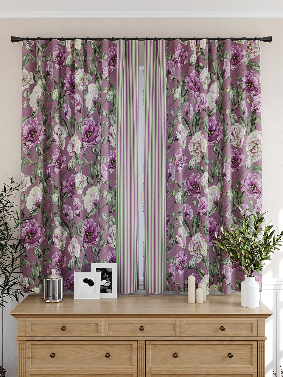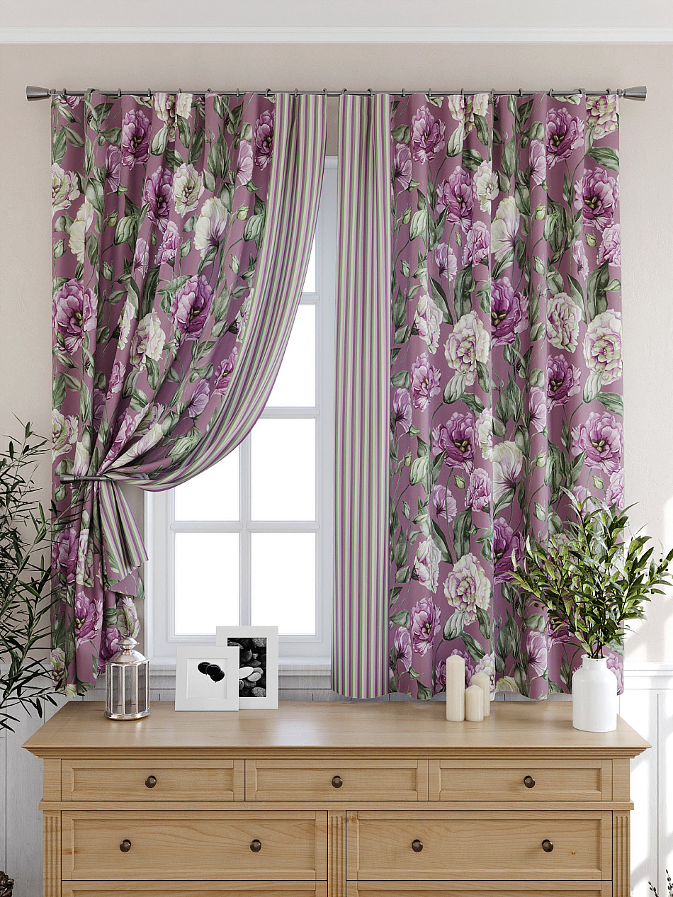 Портьеры 2 шт: Комплект штор из портьерной ткани с отделкой. Фактура ткани прекрасно гармонирует с любым интерьером, а печатный рисунок дает широкие возможности обновить интерьер, фактически не требуя ремонта, за счет огромного выбора. Ткань износостойкая и не требует особого ухода, превосходно драпируется образуя струящиеся складки. Прекрасное решение для создания красоты и уюта с помощью уникальных дизайнов.
