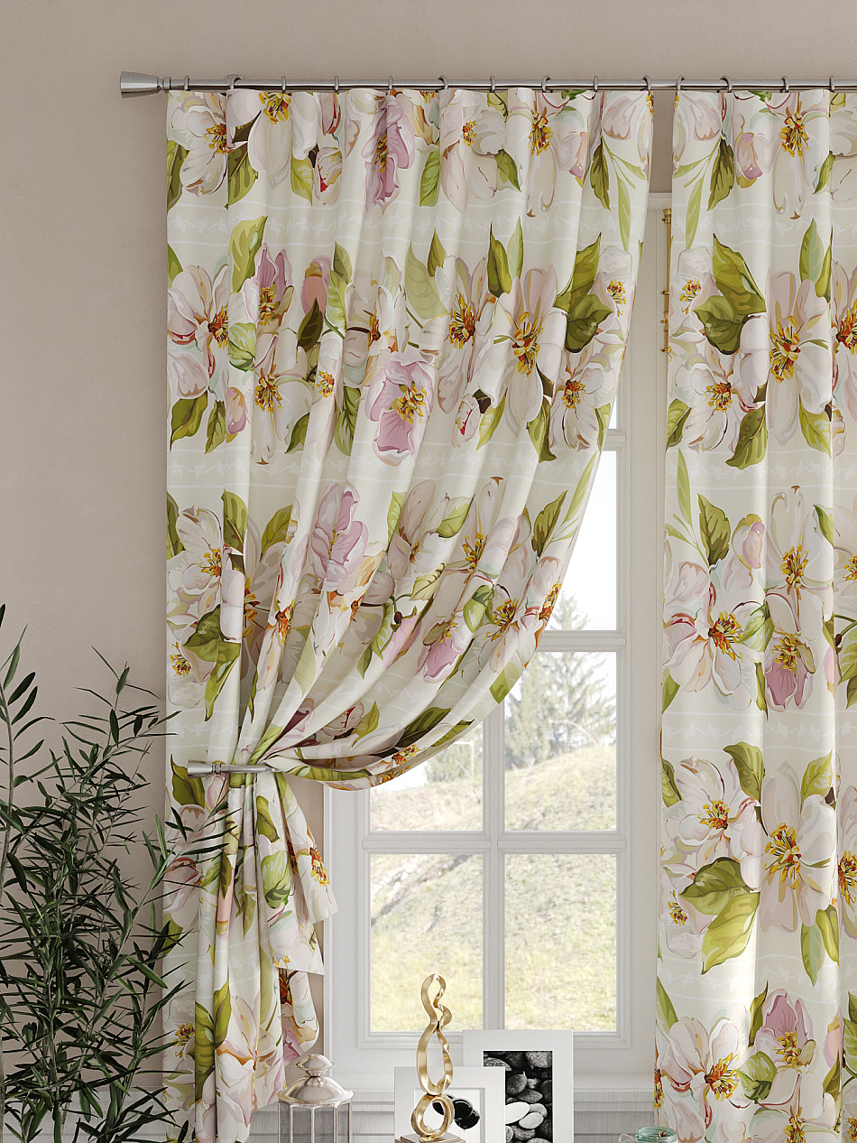 Портьеры 2 шт. Комплект штор из легкой портьерной ткани (габардин) оформлен печатным рисунком. Печатный рисунок дает широкие возможности обновить интерьер фактически не требуя ремонта за счет огромного выбора. Ткани с печатным рисунком безопасны и не содержат токсичных веществ. Не смотря на то, что материал легкий, он имеет высокую плотность, мало загрязнятся и не требует особого ухода даже после стирки, что важно для кухонных занавесок. Шторы не выцветают, не растягиваются, превосходно драпируются, образуя струящиеся складки. Прекрасное решение для создания красоты и уюта с помощью уникальных дизайнов.
