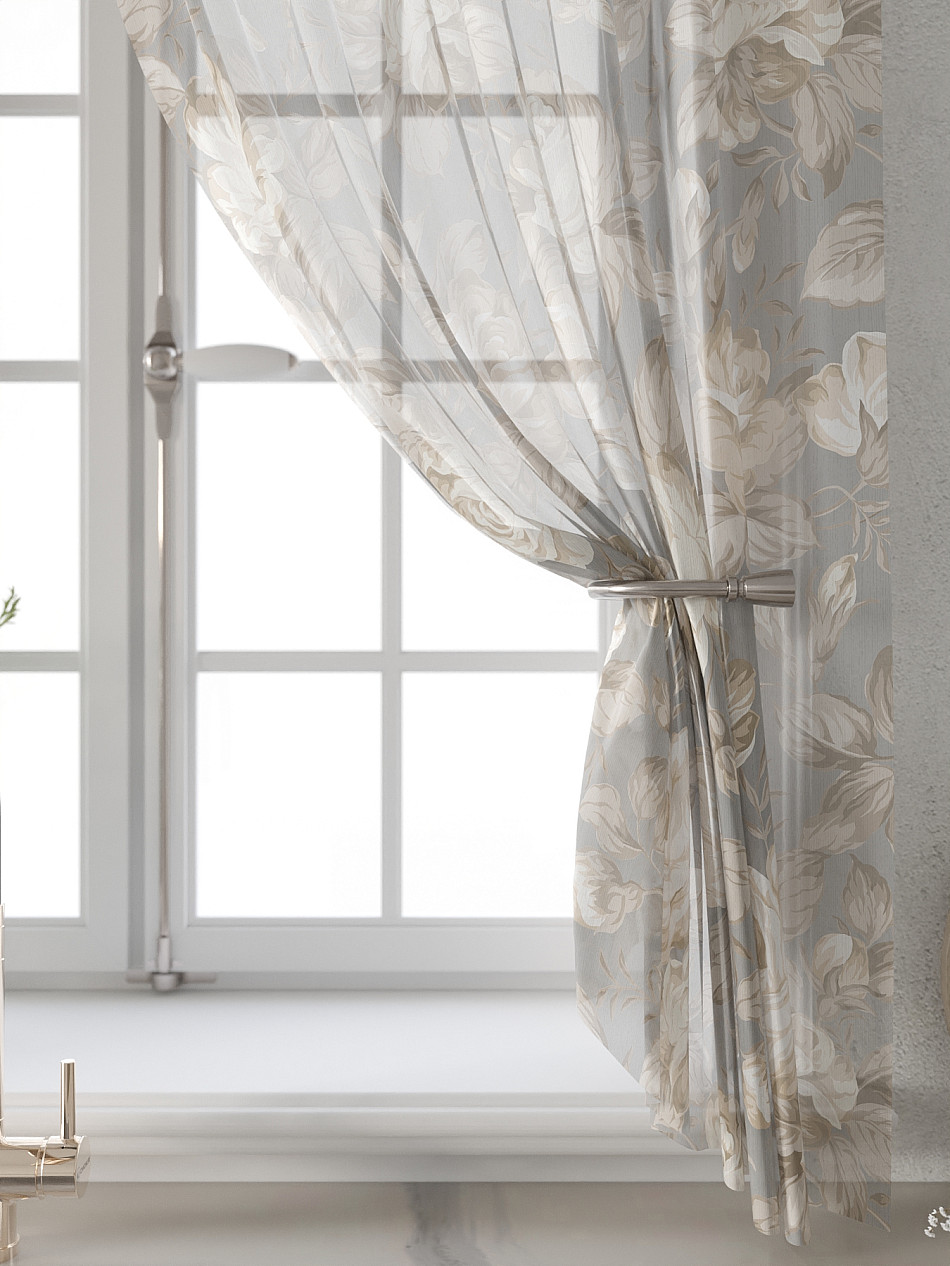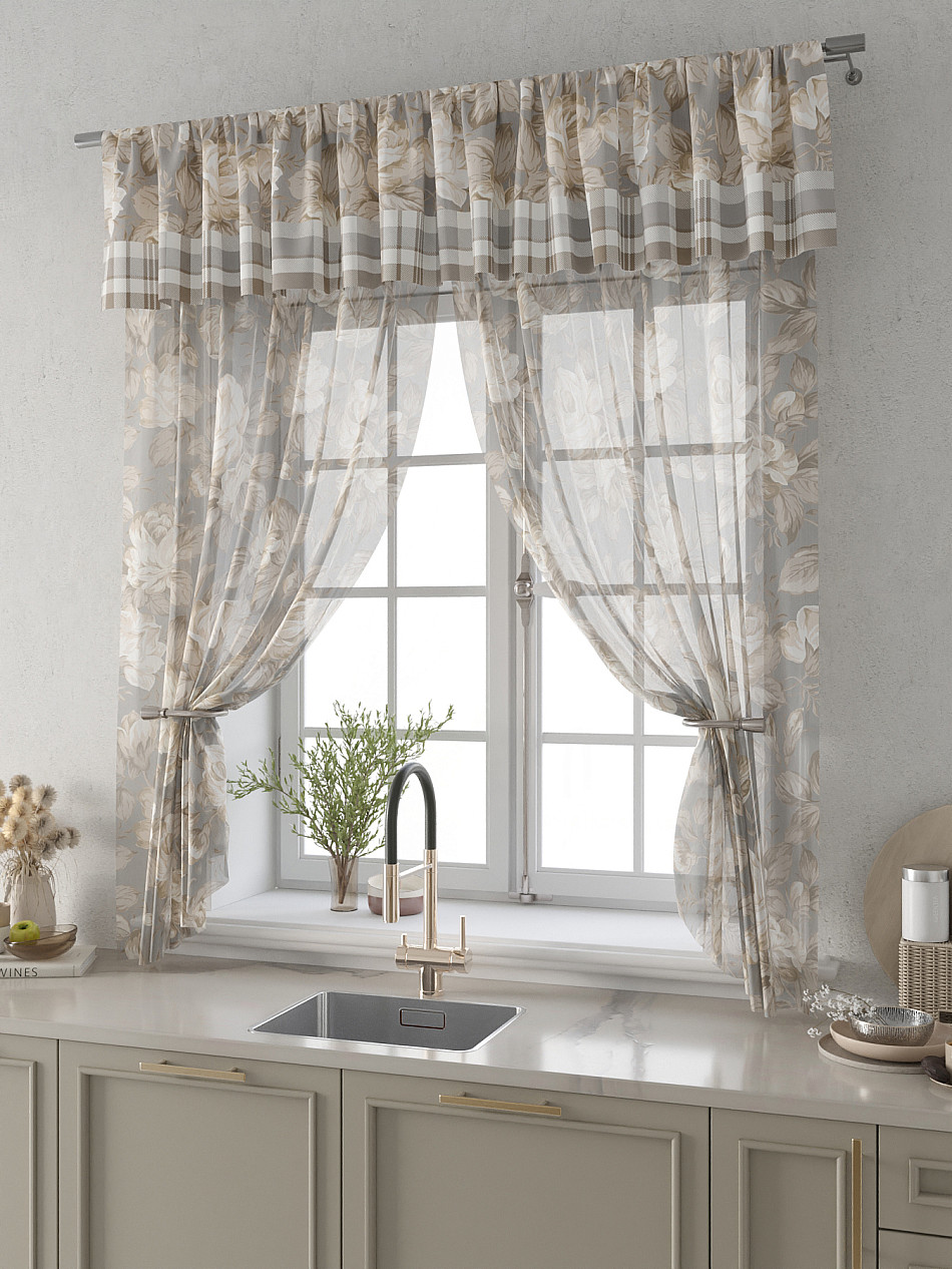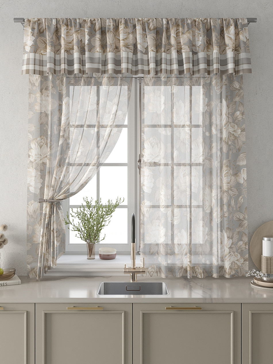 Вуаль 150х180 см. — 2 шт., Ламбрекен 300х40 см. — 1 шт. Комплект штор из вуали оформлены печатным рисунком. Печатный рисунок дает широкие возможности обновить интерьер фактически не требуя ремонта за счет огромного выбора. Ткани с печатным рисунком безопасны и не содержат токсичных веществ. Не смотря на то, что материал легкий, он имеет высокую плотность, мало загрязнятся и не требует особого ухода даже после стирки, что важно для кухонных занавесок. Тюль не выцветает, не растягивается, превосходно драпируются, образуя струящиеся складки. Прекрасное решение для создания красоты и уюта с помощью уникальных дизайнов.