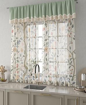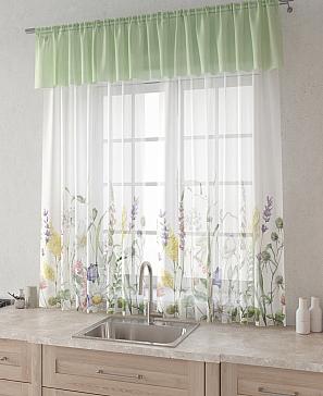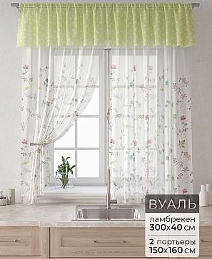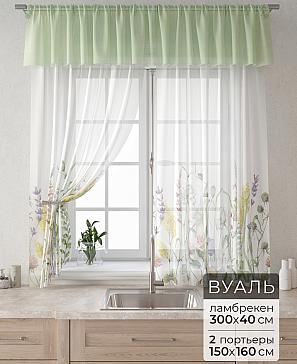 Вуаль 150х160 см. — 2 шт., Ламбрекен 300х40 см. — 1 шт. Комплект штор из вуали оформлены печатным рисунком. Печатный рисунок дает широкие возможности обновить интерьер фактически не требуя ремонта за счет огромного выбора. Ткани с печатным рисунком безопасны и не содержат токсичных веществ. Не смотря на то, что материал легкий, он имеет высокую плотность, мало загрязнятся и не требует особого ухода даже после стирки, что важно для кухонных занавесок. Тюль не выцветает, не растягивается, превосходно драпируются, образуя струящиеся складки. Прекрасное решение для создания красоты и уюта с помощью уникальных дизайнов.