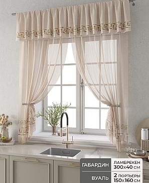Вуаль 150х160 см — 2 шт., Ламбрекен 300х40 см — 1 шт. ( Изменить высоту) Крепление: шторная лента (крючки), кулиска Подробнее