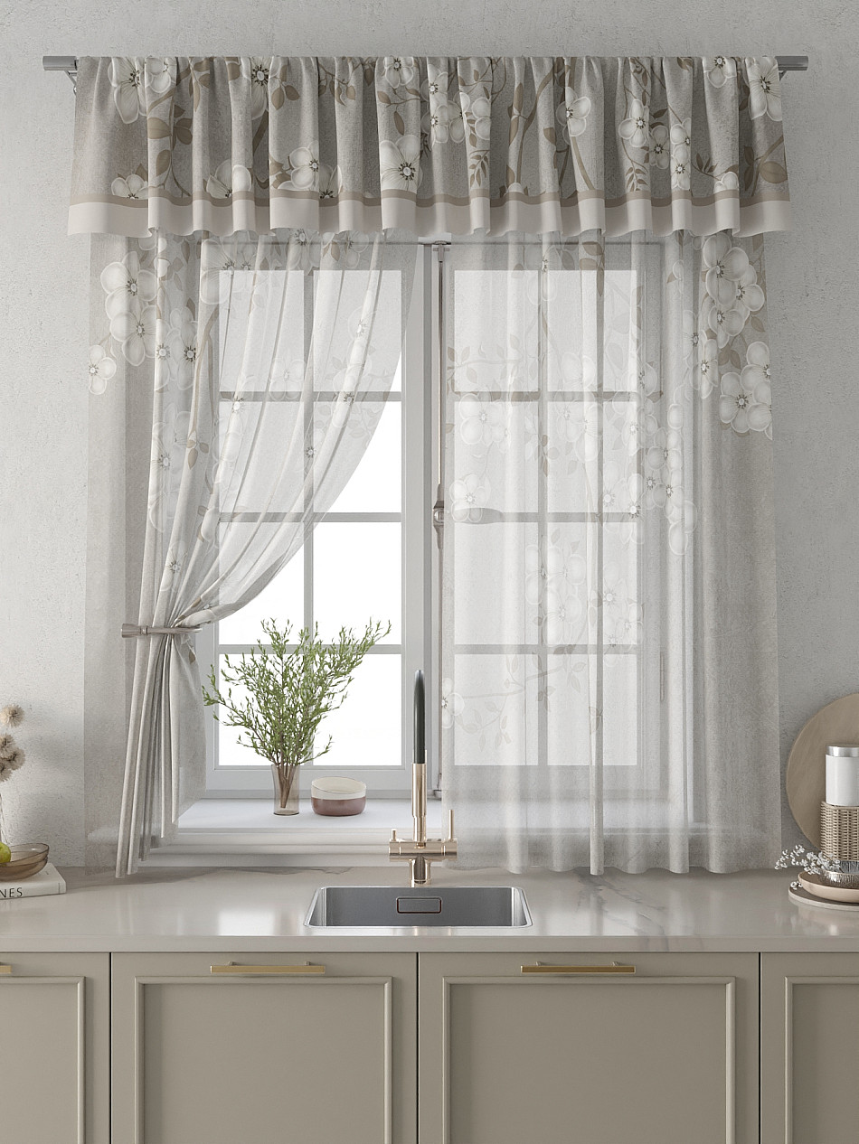 Вуаль 150х160 см. — 2 шт., Ламбрекен 300х40 см. — 1 шт. Комплект штор из вуали оформлены печатным рисунком. Печатный рисунок дает широкие возможности обновить интерьер фактически не требуя ремонта за счет огромного выбора. Ткани с печатным рисунком безопасны и не содержат токсичных веществ. Не смотря на то, что материал легкий, он имеет высокую плотность, мало загрязнятся и не требует особого ухода даже после стирки, что важно для кухонных занавесок. Тюль не выцветает, не растягивается, превосходно драпируются, образуя струящиеся складки. Прекрасное решение для создания красоты и уюта с помощью уникальных дизайнов.