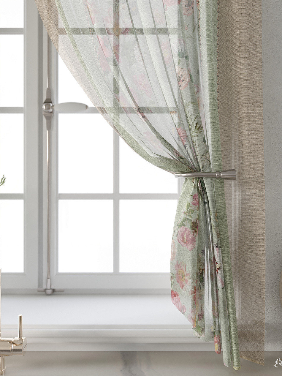 Комбинированные Прованс Растения Фото принт ЦветочныйАксессуары для оформления штор: