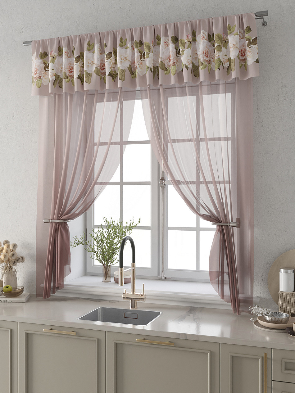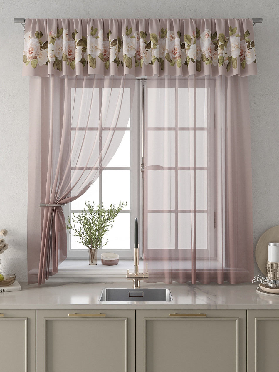 Вуаль 150х180 см. — 2 шт., Ламбрекен 300х40 см. — 1 шт. Комплект штор из вуали оформлены печатным рисунком. Печатный рисунок дает широкие возможности обновить интерьер фактически не требуя ремонта за счет огромного выбора. Ткани с печатным рисунком безопасны и не содержат токсичных веществ. Не смотря на то, что материал легкий, он имеет высокую плотность, мало загрязнятся и не требует особого ухода даже после стирки, что важно для кухонных занавесок. Тюль не выцветает, не растягивается, превосходно драпируются, образуя струящиеся складки. Прекрасное решение для создания красоты и уюта с помощью уникальных дизайнов.