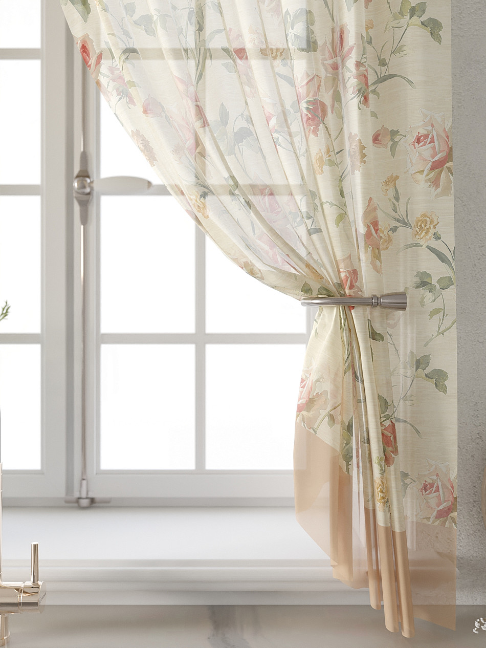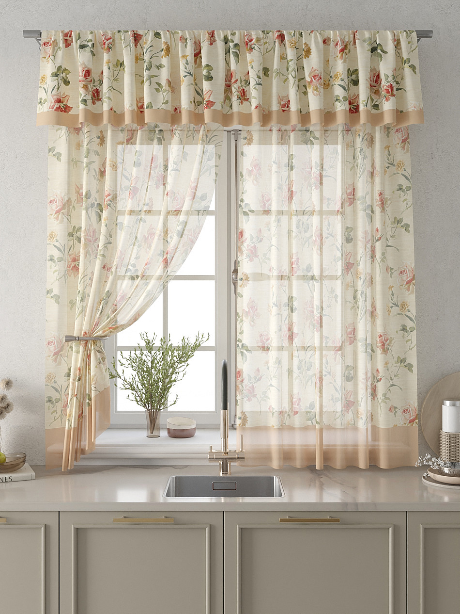 Вуаль 150х180 см. — 2 шт., Ламбрекен 300х40 см. — 1 шт. Комплект штор из вуали оформлены печатным рисунком. Печатный рисунок дает широкие возможности обновить интерьер фактически не требуя ремонта за счет огромного выбора. Ткани с печатным рисунком безопасны и не содержат токсичных веществ. Не смотря на то, что материал легкий, он имеет высокую плотность, мало загрязнятся и не требует особого ухода даже после стирки, что важно для кухонных занавесок. Тюль не выцветает, не растягивается, превосходно драпируются, образуя струящиеся складки. Прекрасное решение для создания красоты и уюта с помощью уникальных дизайнов.