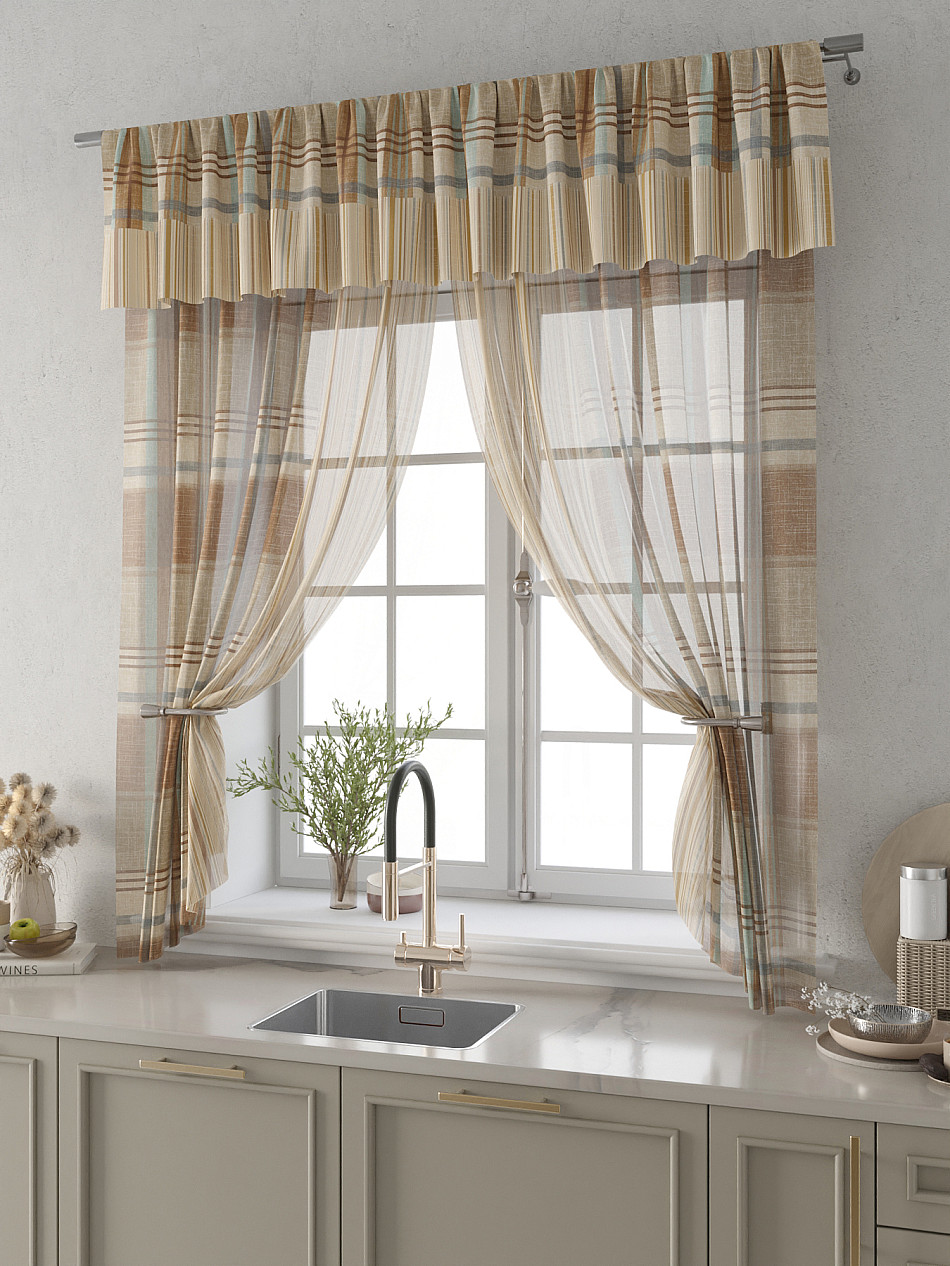 Вуаль 150х180 см. — 2 шт., Ламбрекен 300х40 см. — 1 шт. Комплект штор из вуали оформлены печатным рисунком. Печатный рисунок дает широкие возможности обновить интерьер фактически не требуя ремонта за счет огромного выбора. Ткани с печатным рисунком безопасны и не содержат токсичных веществ. Не смотря на то, что материал легкий, он имеет высокую плотность, мало загрязнятся и не требует особого ухода даже после стирки, что важно для кухонных занавесок. Тюль не выцветает, не растягивается, превосходно драпируются, образуя струящиеся складки. Прекрасное решение для создания красоты и уюта с помощью уникальных дизайнов.