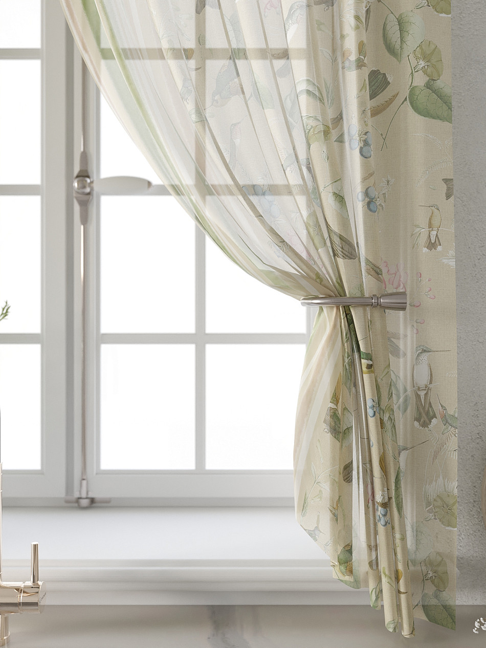 - Вуаль портьера для комнаты с принтом