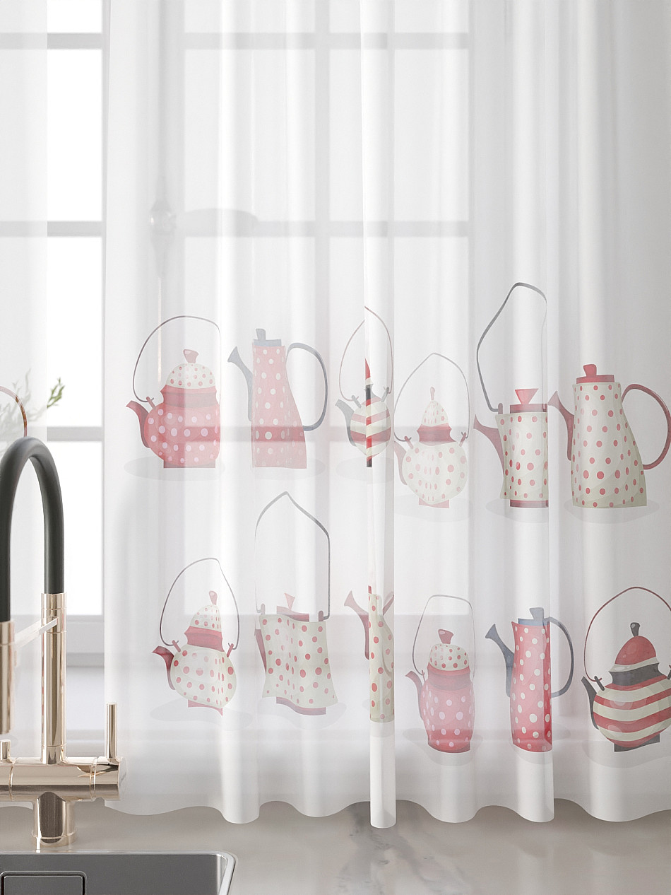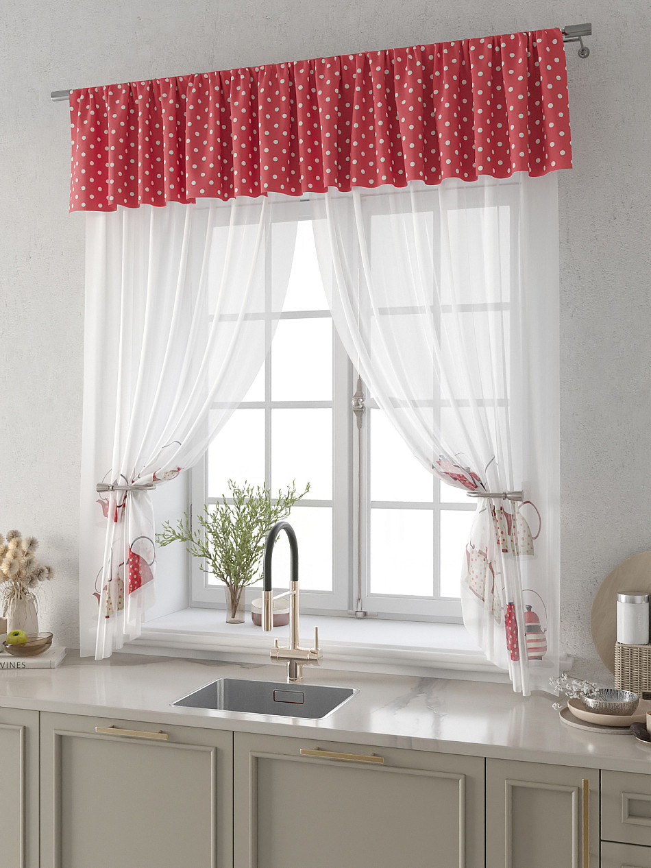 Вуаль 150х180 см. — 2 шт., Ламбрекен 300х40 см. — 1 шт. Комплект штор из вуали оформлены печатным рисунком. Печатный рисунок дает широкие возможности обновить интерьер фактически не требуя ремонта за счет огромного выбора. Ткани с печатным рисунком безопасны и не содержат токсичных веществ. Не смотря на то, что материал легкий, он имеет высокую плотность, мало загрязнятся и не требует особого ухода даже после стирки, что важно для кухонных занавесок. Тюль не выцветает, не растягивается, превосходно драпируются, образуя струящиеся складки. Прекрасное решение для создания красоты и уюта с помощью уникальных дизайнов.