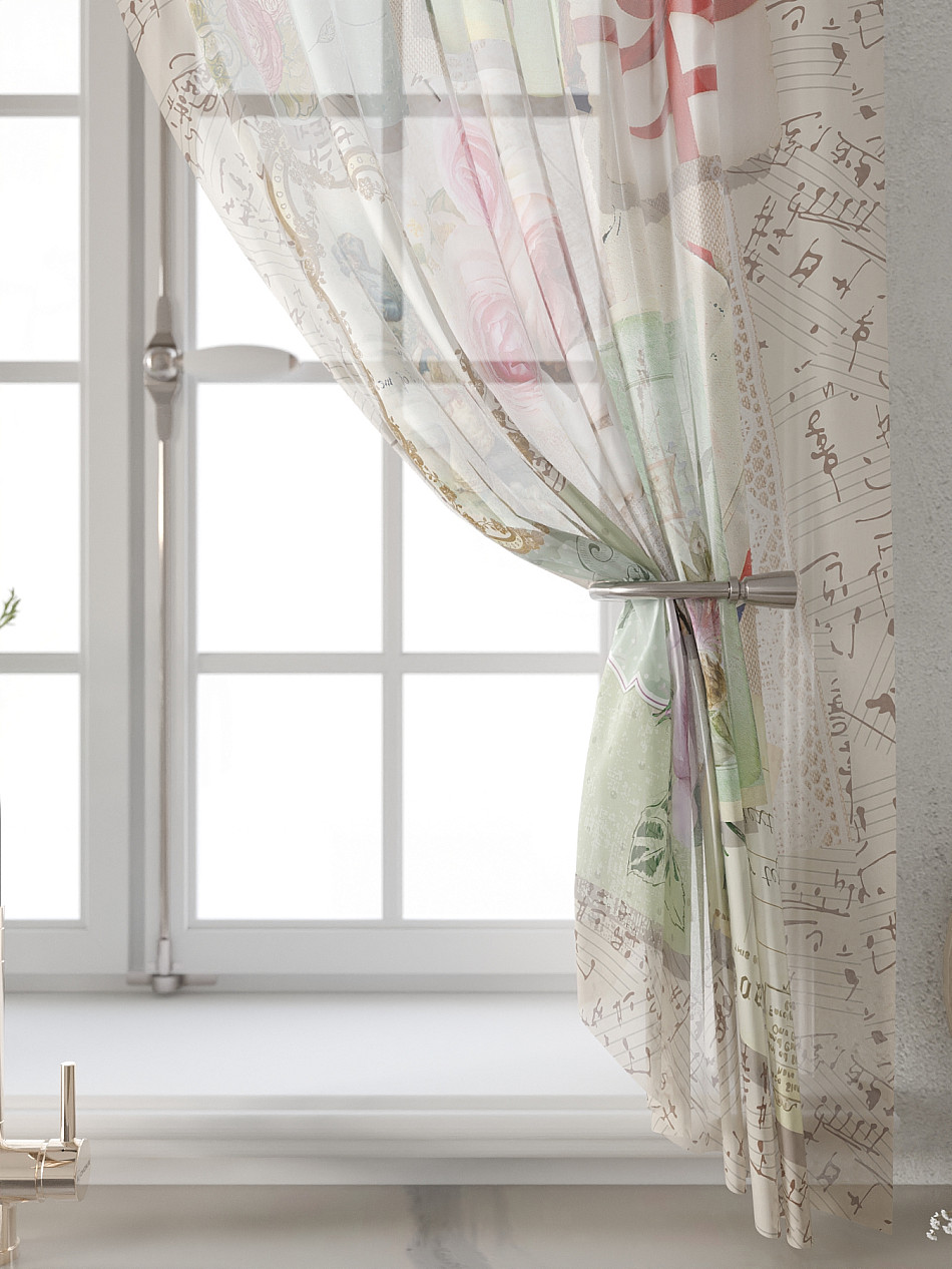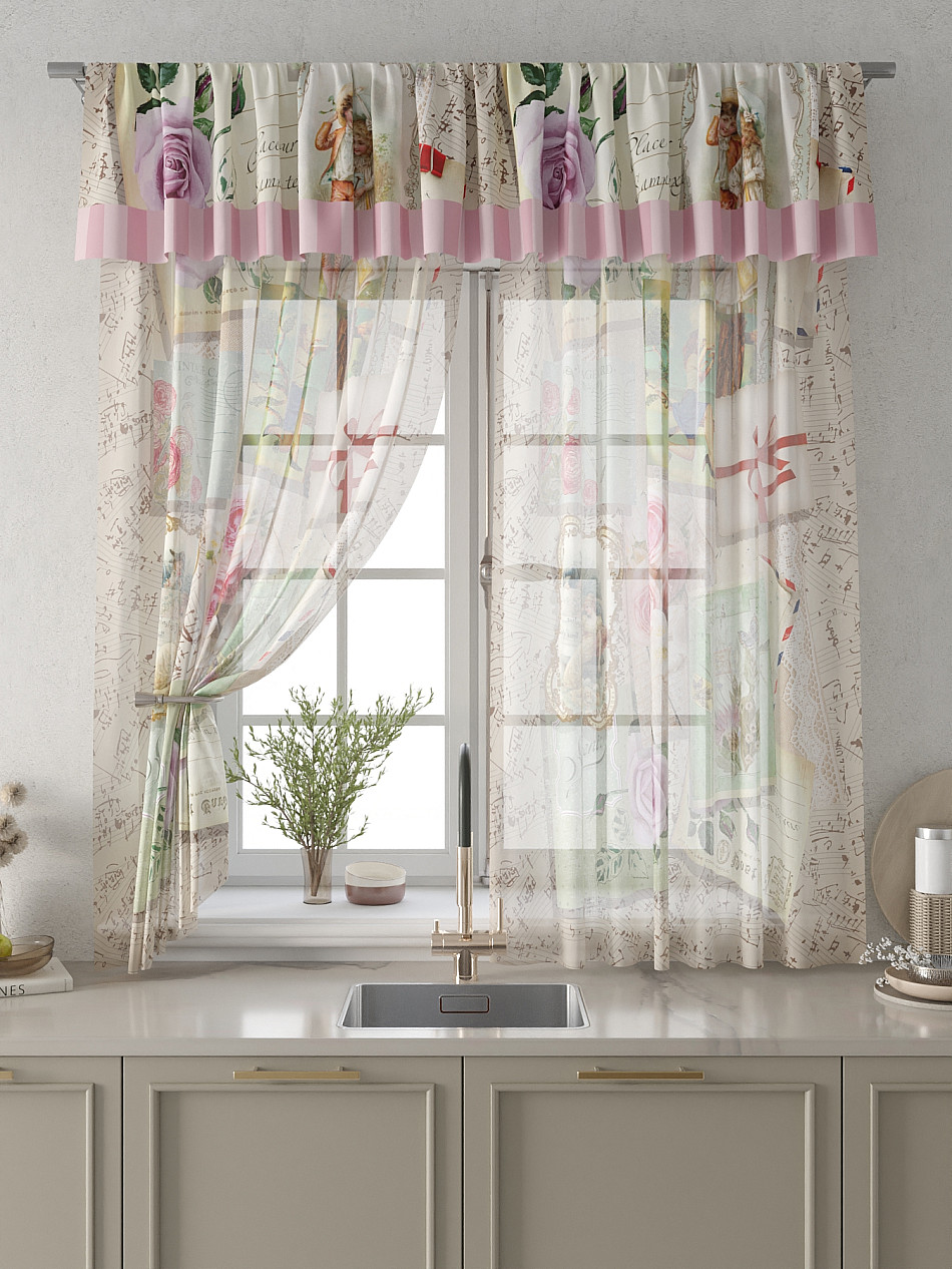 Вуаль 150х180 см. — 2 шт., Ламбрекен 300х40 см. — 1 шт. Комплект штор из вуали оформлены печатным рисунком. Печатный рисунок дает широкие возможности обновить интерьер фактически не требуя ремонта за счет огромного выбора. Ткани с печатным рисунком безопасны и не содержат токсичных веществ. Не смотря на то, что материал легкий, он имеет высокую плотность, мало загрязнятся и не требует особого ухода даже после стирки, что важно для кухонных занавесок. Тюль не выцветает, не растягивается, превосходно драпируются, образуя струящиеся складки. Прекрасное решение для создания красоты и уюта с помощью уникальных дизайнов.