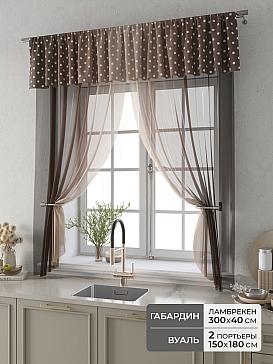Вуаль 150х180 см — 2 шт., Ламбрекен 300х40 см — 1 шт. ( Изменить высоту) Крепление: шторная лента (крючки), кулиска Подробнее