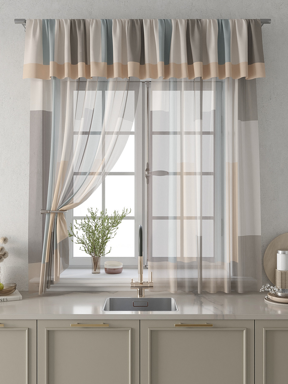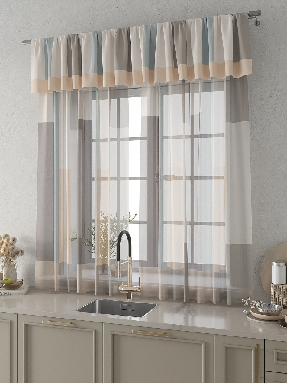 Вуаль 150х160 см. — 2 шт., Ламбрекен 300х40 см. — 1 шт. Комплект штор из вуали оформлены печатным рисунком. Печатный рисунок дает широкие возможности обновить интерьер фактически не требуя ремонта за счет огромного выбора. Ткани с печатным рисунком безопасны и не содержат токсичных веществ. Не смотря на то, что материал легкий, он имеет высокую плотность, мало загрязнятся и не требует особого ухода даже после стирки, что важно для кухонных занавесок. Тюль не выцветает, не растягивается, превосходно драпируются, образуя струящиеся складки. Прекрасное решение для создания красоты и уюта с помощью уникальных дизайнов.
