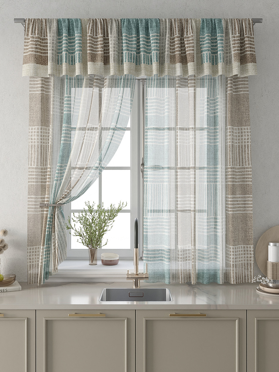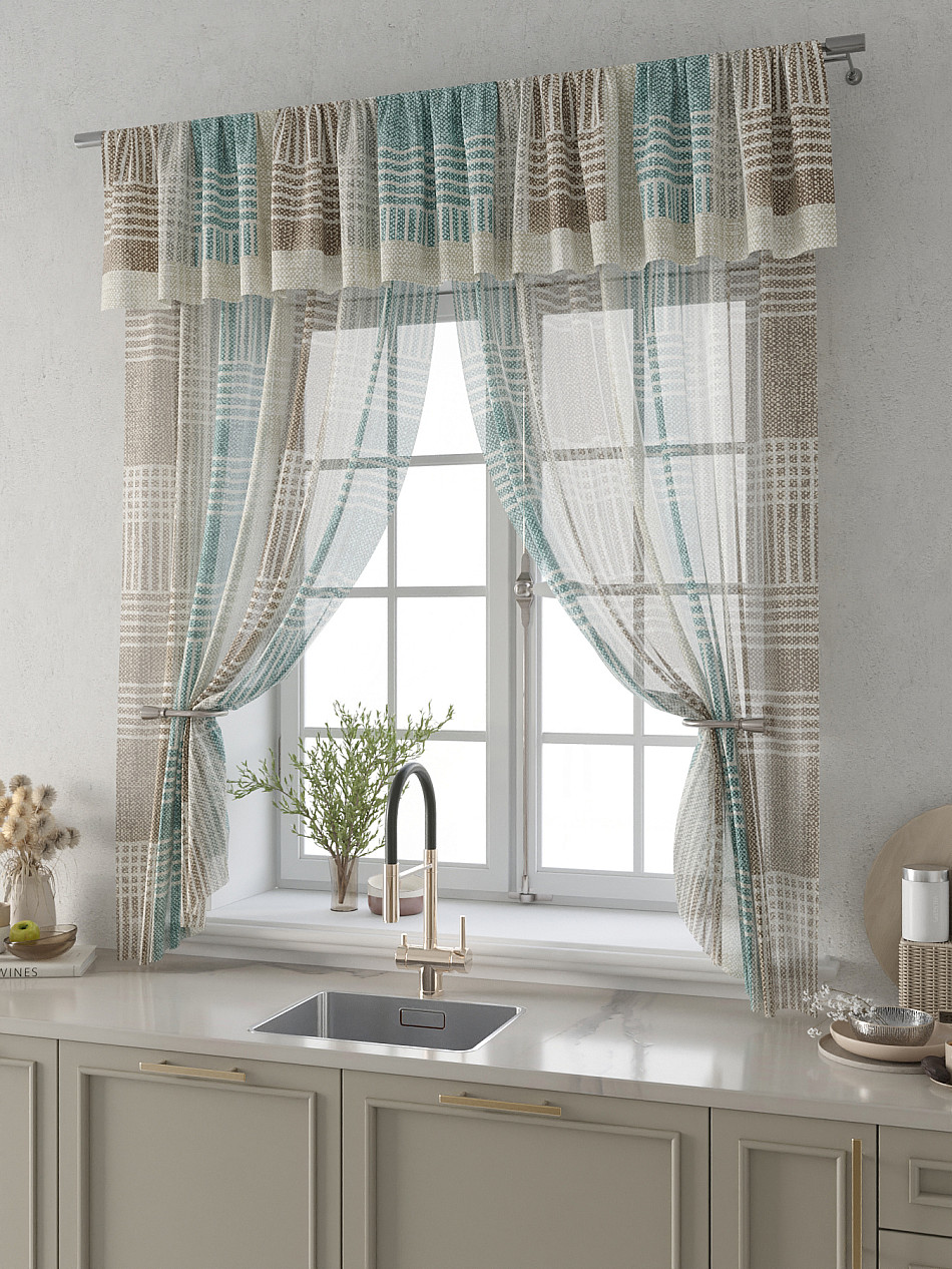 Вуаль 150х160 см. — 2 шт., Ламбрекен 300х40 см. — 1 шт. Комплект штор из вуали оформлены печатным рисунком. Печатный рисунок дает широкие возможности обновить интерьер фактически не требуя ремонта за счет огромного выбора. Ткани с печатным рисунком безопасны и не содержат токсичных веществ. Не смотря на то, что материал легкий, он имеет высокую плотность, мало загрязнятся и не требует особого ухода даже после стирки, что важно для кухонных занавесок. Тюль не выцветает, не растягивается, превосходно драпируются, образуя струящиеся складки. Прекрасное решение для создания красоты и уюта с помощью уникальных дизайнов.