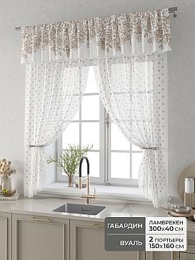 - Состав комплекта Вуаль 150х160 см — 2 шт., Ламбрекен 300х40 см — 1 шт.