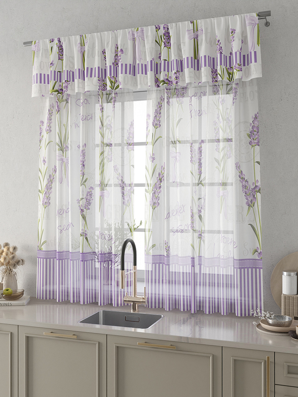 Вуаль 150х160 см. — 2 шт., Ламбрекен 300х40 см. — 1 шт. Комплект штор из вуали оформлены печатным рисунком. Печатный рисунок дает широкие возможности обновить интерьер фактически не требуя ремонта за счет огромного выбора. Ткани с печатным рисунком безопасны и не содержат токсичных веществ. Не смотря на то, что материал легкий, он имеет высокую плотность, мало загрязнятся и не требует особого ухода даже после стирки, что важно для кухонных занавесок. Тюль не выцветает, не растягивается, превосходно драпируются, образуя струящиеся складки. Прекрасное решение для создания красоты и уюта с помощью уникальных дизайнов.