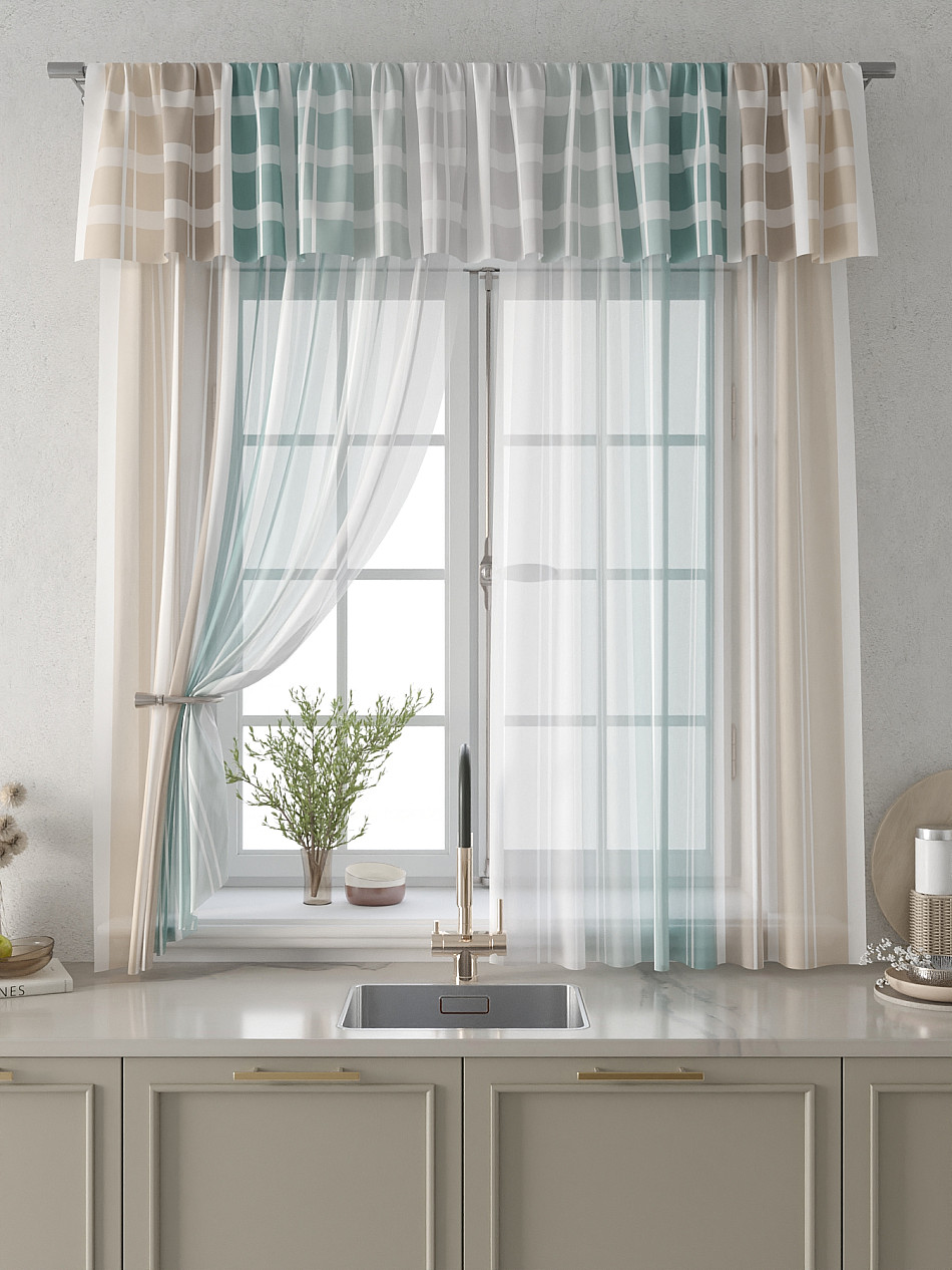 Вуаль 150х180 см. — 2 шт., Ламбрекен 300х40 см. — 1 шт. Комплект штор из вуали оформлены печатным рисунком. Печатный рисунок дает широкие возможности обновить интерьер фактически не требуя ремонта за счет огромного выбора. Ткани с печатным рисунком безопасны и не содержат токсичных веществ. Не смотря на то, что материал легкий, он имеет высокую плотность, мало загрязнятся и не требует особого ухода даже после стирки, что важно для кухонных занавесок. Тюль не выцветает, не растягивается, превосходно драпируются, образуя струящиеся складки. Прекрасное решение для создания красоты и уюта с помощью уникальных дизайнов.
