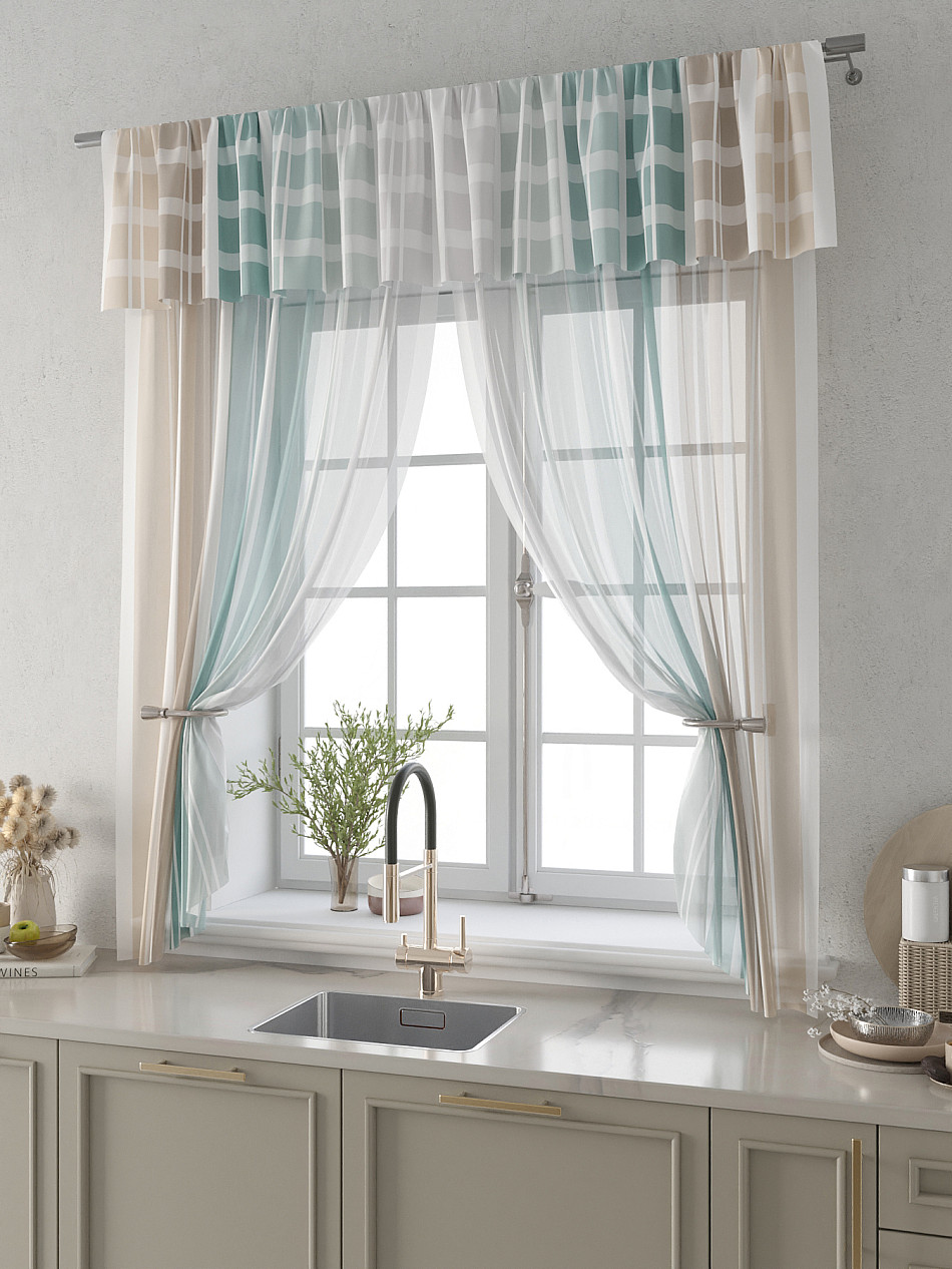 Вуаль 150х180 см — 2 шт., Ламбрекен 300х40 см — 1 шт. ( Изменить высоту) Крепление: шторная лента (крючки), кулиска Подробнее