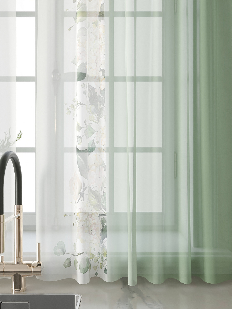 Вуаль 150х180 см. — 2 шт., Ламбрекен 300х40 см. — 1 шт. Комплект штор из вуали оформлены печатным рисунком. Печатный рисунок дает широкие возможности обновить интерьер фактически не требуя ремонта за счет огромного выбора. Ткани с печатным рисунком безопасны и не содержат токсичных веществ. Не смотря на то, что материал легкий, он имеет высокую плотность, мало загрязнятся и не требует особого ухода даже после стирки, что важно для кухонных занавесок. Тюль не выцветает, не растягивается, превосходно драпируются, образуя струящиеся складки. Прекрасное решение для создания красоты и уюта с помощью уникальных дизайнов.