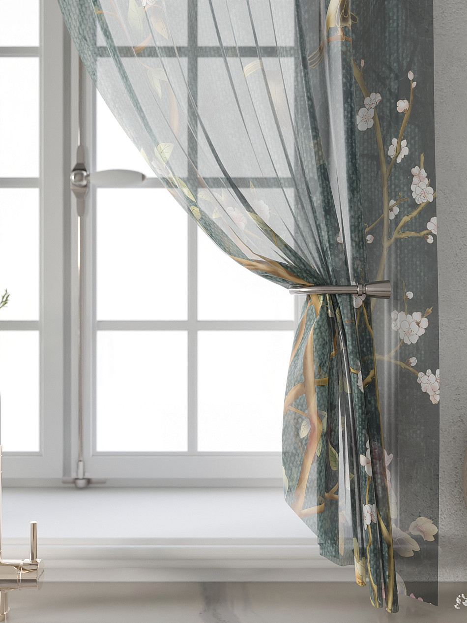 Комбинированные Прованс Птицы Растения Фото принт ЦветочныйАксессуары для оформления штор: