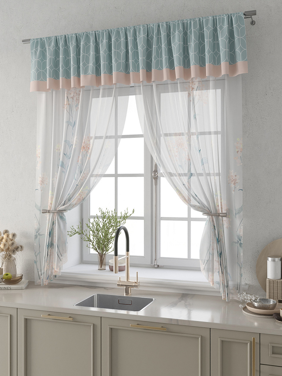 Вуаль 150х180 см. — 2 шт., Ламбрекен 300х40 см. — 1 шт. Комплект штор из вуали оформлены печатным рисунком. Печатный рисунок дает широкие возможности обновить интерьер фактически не требуя ремонта за счет огромного выбора. Ткани с печатным рисунком безопасны и не содержат токсичных веществ. Не смотря на то, что материал легкий, он имеет высокую плотность, мало загрязнятся и не требует особого ухода даже после стирки, что важно для кухонных занавесок. Тюль не выцветает, не растягивается, превосходно драпируются, образуя струящиеся складки. Прекрасное решение для создания красоты и уюта с помощью уникальных дизайнов.