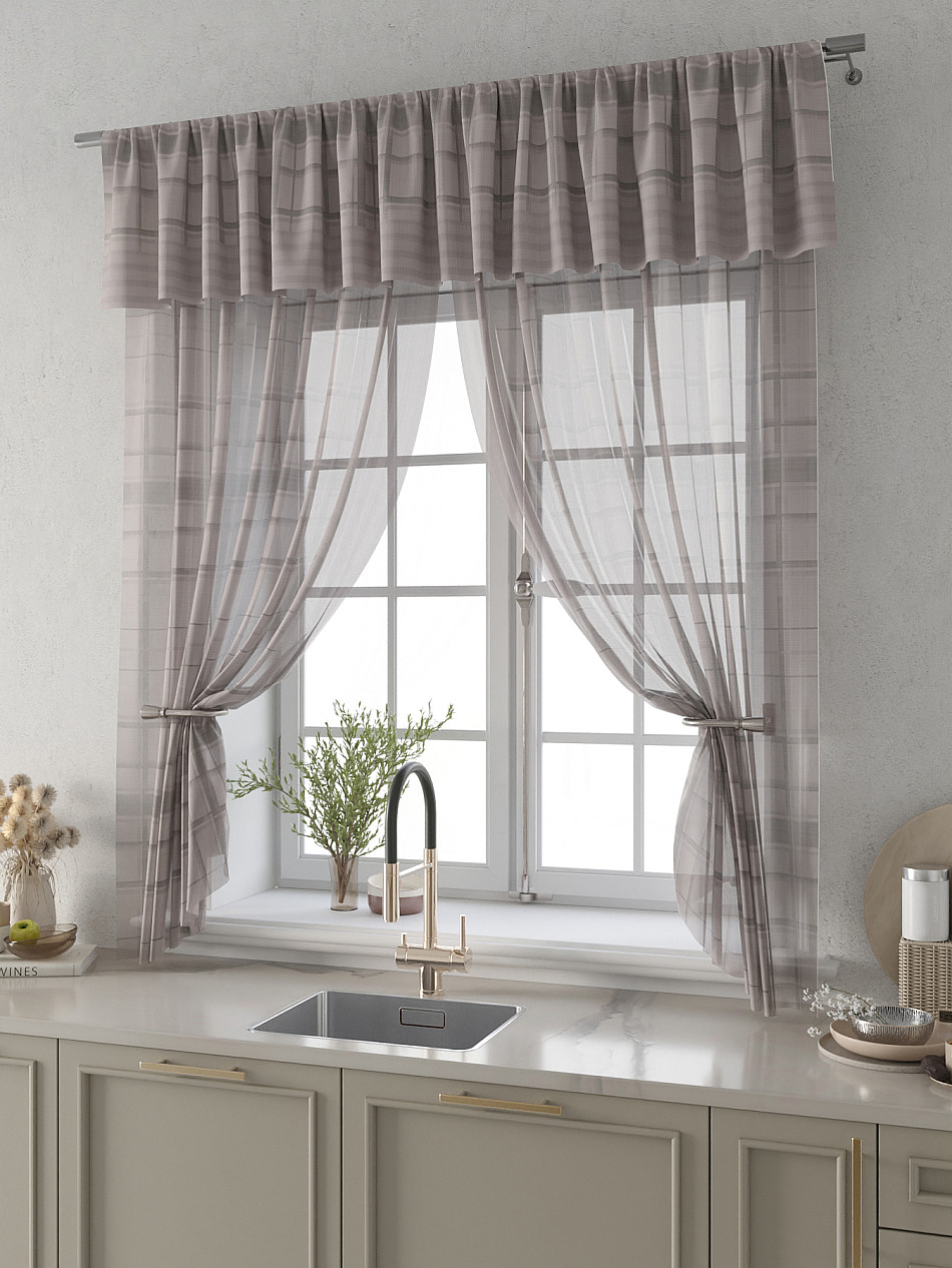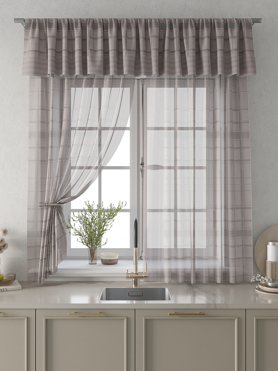 Вуаль 150х180 см — 2 шт., Ламбрекен 300х40 см — 1 шт. ( Изменить высоту) Крепление: шторная лента (крючки), кулиска Подробнее