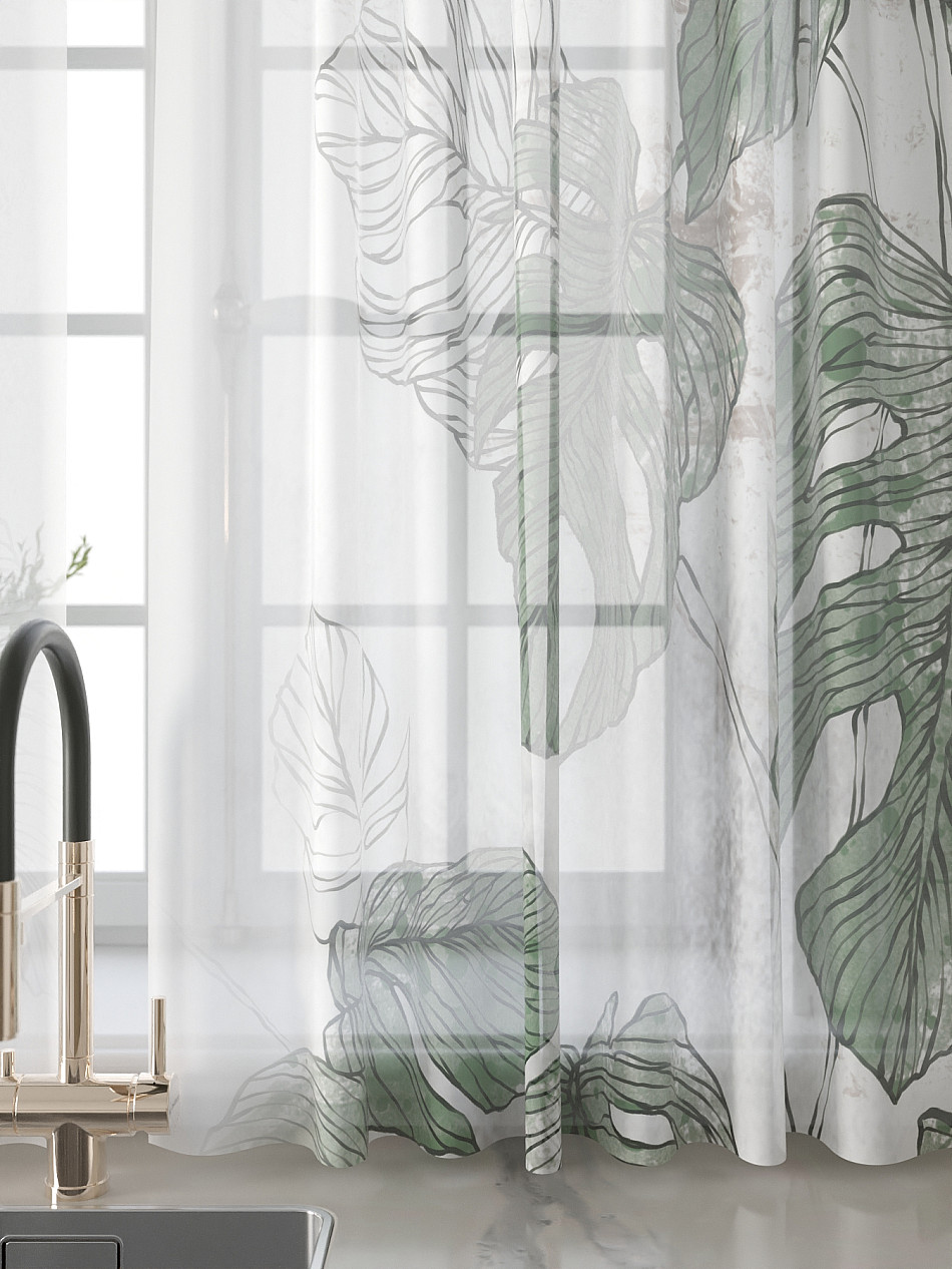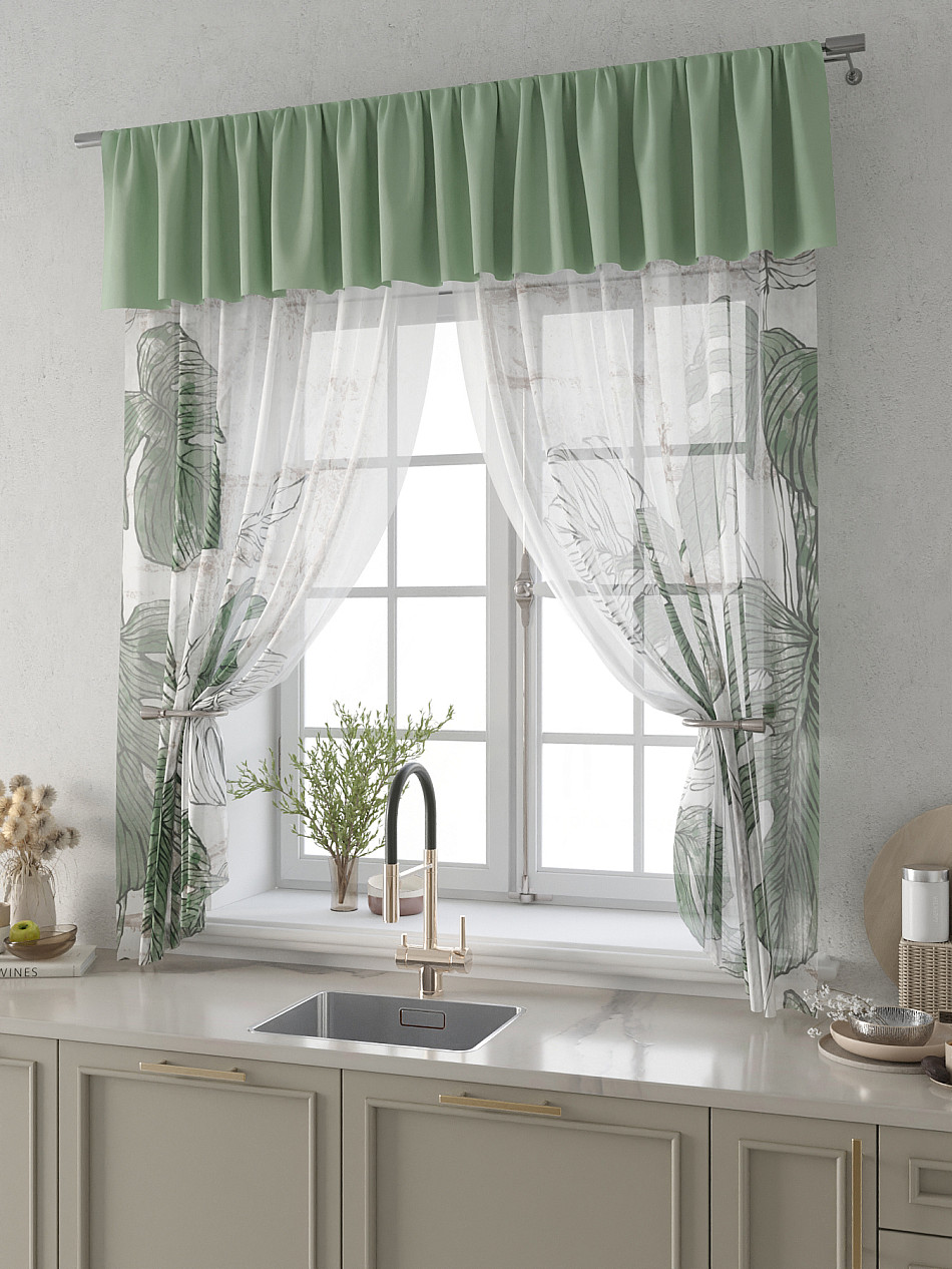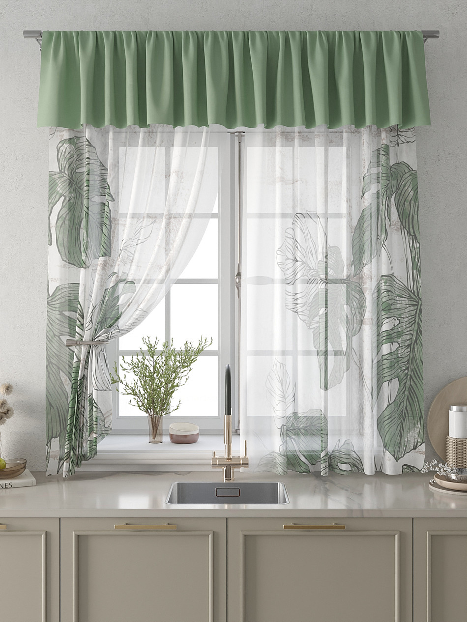 Вуаль 150х180 см. — 2 шт., Ламбрекен 300х40 см. — 1 шт. Комплект штор из вуали оформлены печатным рисунком. Печатный рисунок дает широкие возможности обновить интерьер фактически не требуя ремонта за счет огромного выбора. Ткани с печатным рисунком безопасны и не содержат токсичных веществ. Не смотря на то, что материал легкий, он имеет высокую плотность, мало загрязнятся и не требует особого ухода даже после стирки, что важно для кухонных занавесок. Тюль не выцветает, не растягивается, превосходно драпируются, образуя струящиеся складки. Прекрасное решение для создания красоты и уюта с помощью уникальных дизайнов.