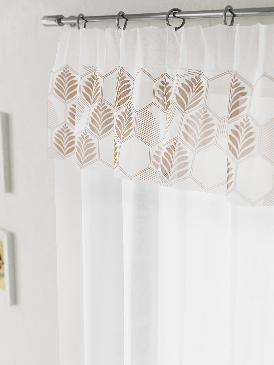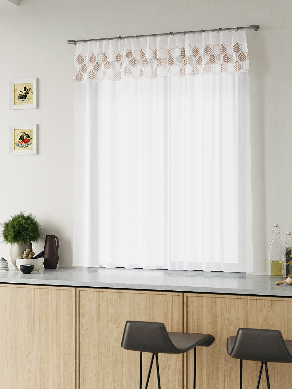 ВыбратьВуаль 150х160 см. — 1 шт. Белая вуаль оформлена печатным ламбрекеном. Печатный рисунок дает широкие возможности обновить интерьер фактически не требуя ремонта за счет огромного выбора. Ткани с печатным рисунком безопасны и не содержат токсичных веществ. Не смотря на то, что материал легкий, он имеет высокую плотность, мало загрязнятся и не требует особого ухода даже после стирки, что важно для кухонных занавесок. Тюль не выцветает, не растягивается, превосходно драпируются, образуя струящиеся складки. Прекрасное решение для создания красоты и уюта с помощью уникальных дизайнов.