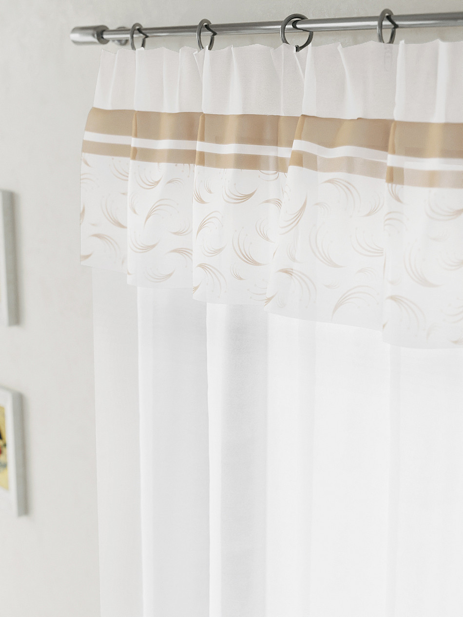 ВыбратьВуаль 150х160 см. — 1 шт. Белая вуаль оформлена печатным ламбрекеном. Печатный рисунок дает широкие возможности обновить интерьер фактически не требуя ремонта за счет огромного выбора. Ткани с печатным рисунком безопасны и не содержат токсичных веществ. Не смотря на то, что материал легкий, он имеет высокую плотность, мало загрязнятся и не требует особого ухода даже после стирки, что важно для кухонных занавесок. Тюль не выцветает, не растягивается, превосходно драпируются, образуя струящиеся складки. Прекрасное решение для создания красоты и уюта с помощью уникальных дизайнов.