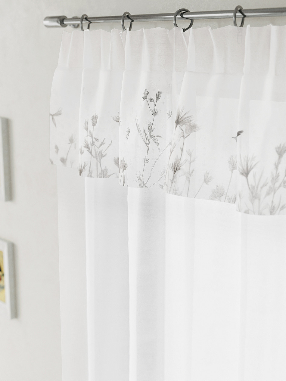ВыбратьВуаль 150х160 см. — 1 шт. Белая вуаль оформлена печатным ламбрекеном. Печатный рисунок дает широкие возможности обновить интерьер фактически не требуя ремонта за счет огромного выбора. Ткани с печатным рисунком безопасны и не содержат токсичных веществ. Не смотря на то, что материал легкий, он имеет высокую плотность, мало загрязнятся и не требует особого ухода даже после стирки, что важно для кухонных занавесок. Тюль не выцветает, не растягивается, превосходно драпируются, образуя струящиеся складки. Прекрасное решение для создания красоты и уюта с помощью уникальных дизайнов.