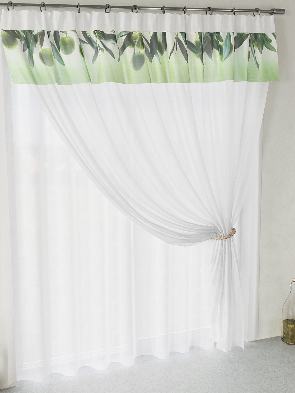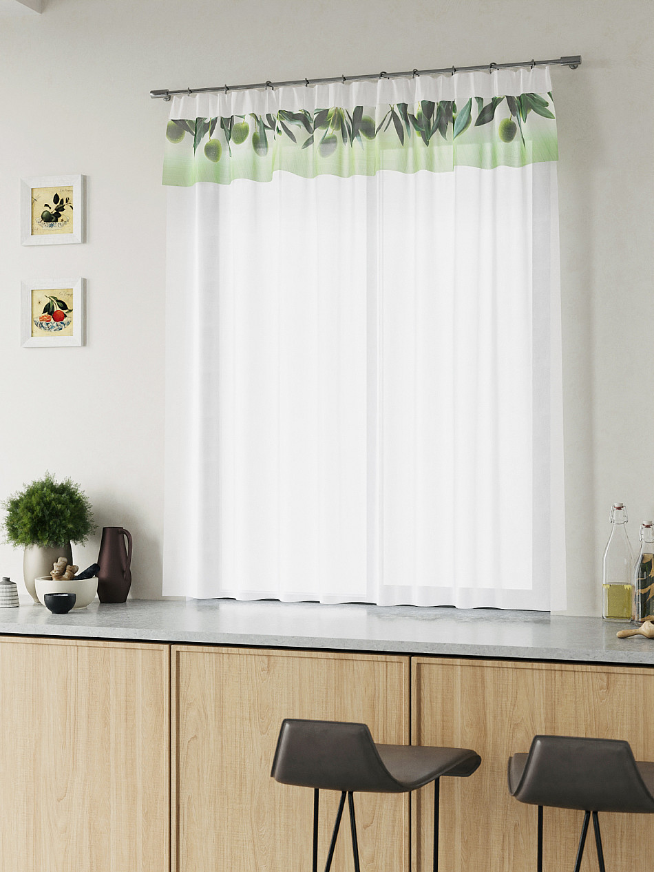 ВыбратьВуаль 150х160 см. — 1 шт. Белая вуаль оформлена печатным ламбрекеном. Печатный рисунок дает широкие возможности обновить интерьер фактически не требуя ремонта за счет огромного выбора. Ткани с печатным рисунком безопасны и не содержат токсичных веществ. Не смотря на то, что материал легкий, он имеет высокую плотность, мало загрязнятся и не требует особого ухода даже после стирки, что важно для кухонных занавесок. Тюль не выцветает, не растягивается, превосходно драпируются, образуя струящиеся складки. Прекрасное решение для создания красоты и уюта с помощью уникальных дизайнов.