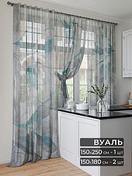 Тюль 2 шт.: Легкая основа (вуаль) оформлена современным рисунком. Ширина — 150 см., высота — 180 см., крепление — шторная лента (крючки).