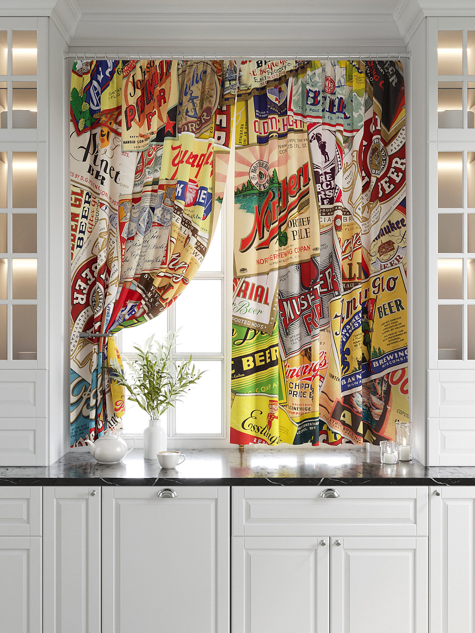 Комплект штор из легкой портьерной ткани (габардин) оформлен печатным рисунком. Печатный рисунок дает широкие возможности обновить интерьер фактически нет требуя ремонта за счет огромного выбора. Ткани с печатным рисунком безопасны и не содержат токсичных веществ. Не смотря на то что, материал легкий, он имеет высокую плотность, мало загрязнятся и не требует особого ухода даже после стирки, что важно для кухонных занавесок. Шторы не выцветают, не растягиваются, превосходно драпируются, образуя струящиеся складки. Прекрасное решение для создания красоты и уюта с помощью уникальных дизайнов.