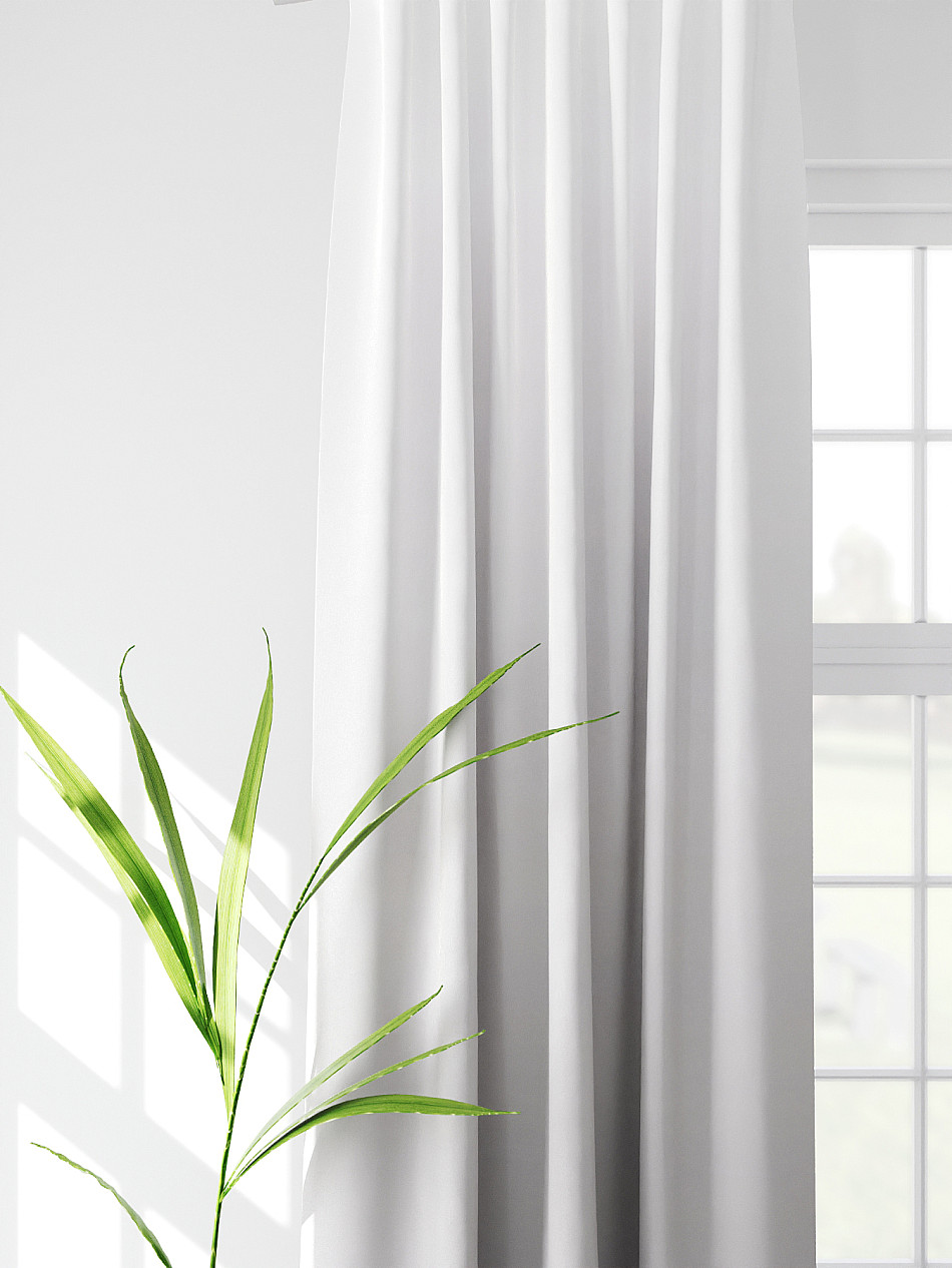 По верхнему краю портьер пришита шторная тесьма 6 см, с ее помощью затянув узелки от кордовых нитей с обеих сторон и стянув их до нужного размера можно сформировать округлые складки, далее вставить крючки в кармашки и повесить на карниз. Обязательно проверьте кордовые нити – они должны быть надежно завязаны, в противном случае во время стягивания они могут вылететь. Шторная тесьма имеет два ряда кармашков, с их помощью можно регулировать не только длину, но и ширину. Такое крепление подходит для всех типов карнизов.