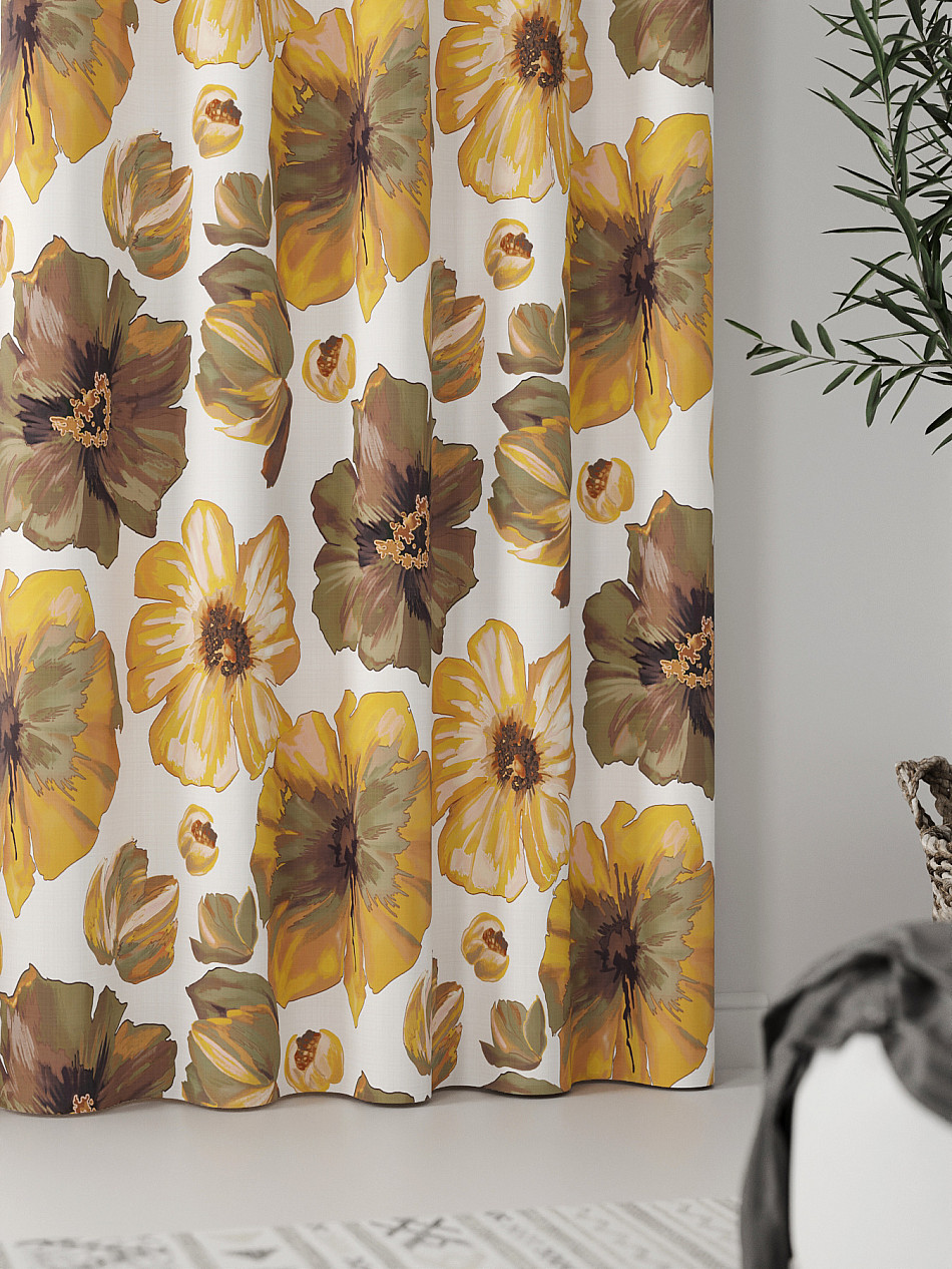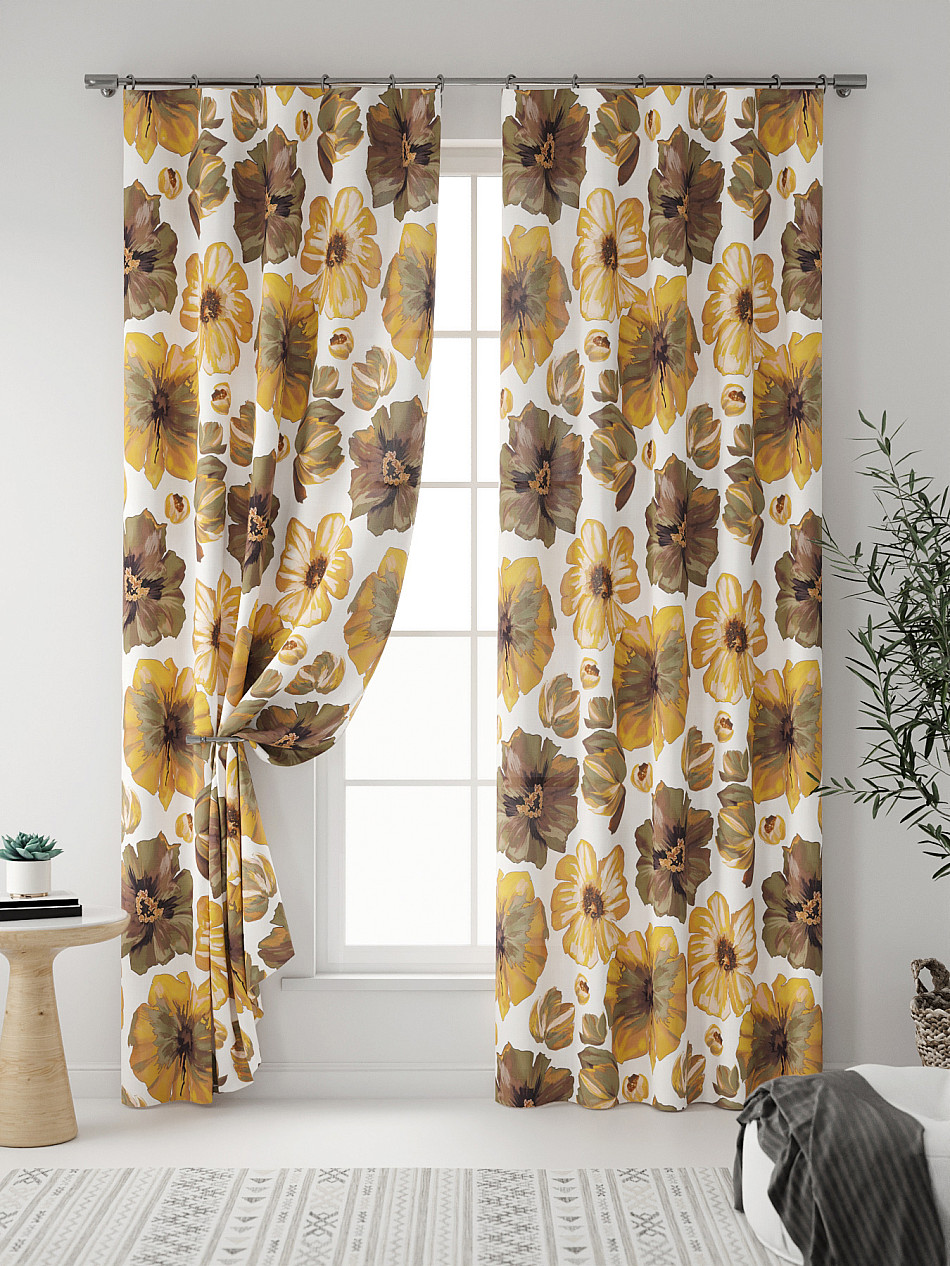 Портьера 2 шт. Плотная основа портьер оформлена флористическим рисунком. Размеры одного полотна: