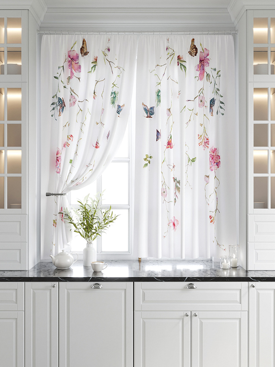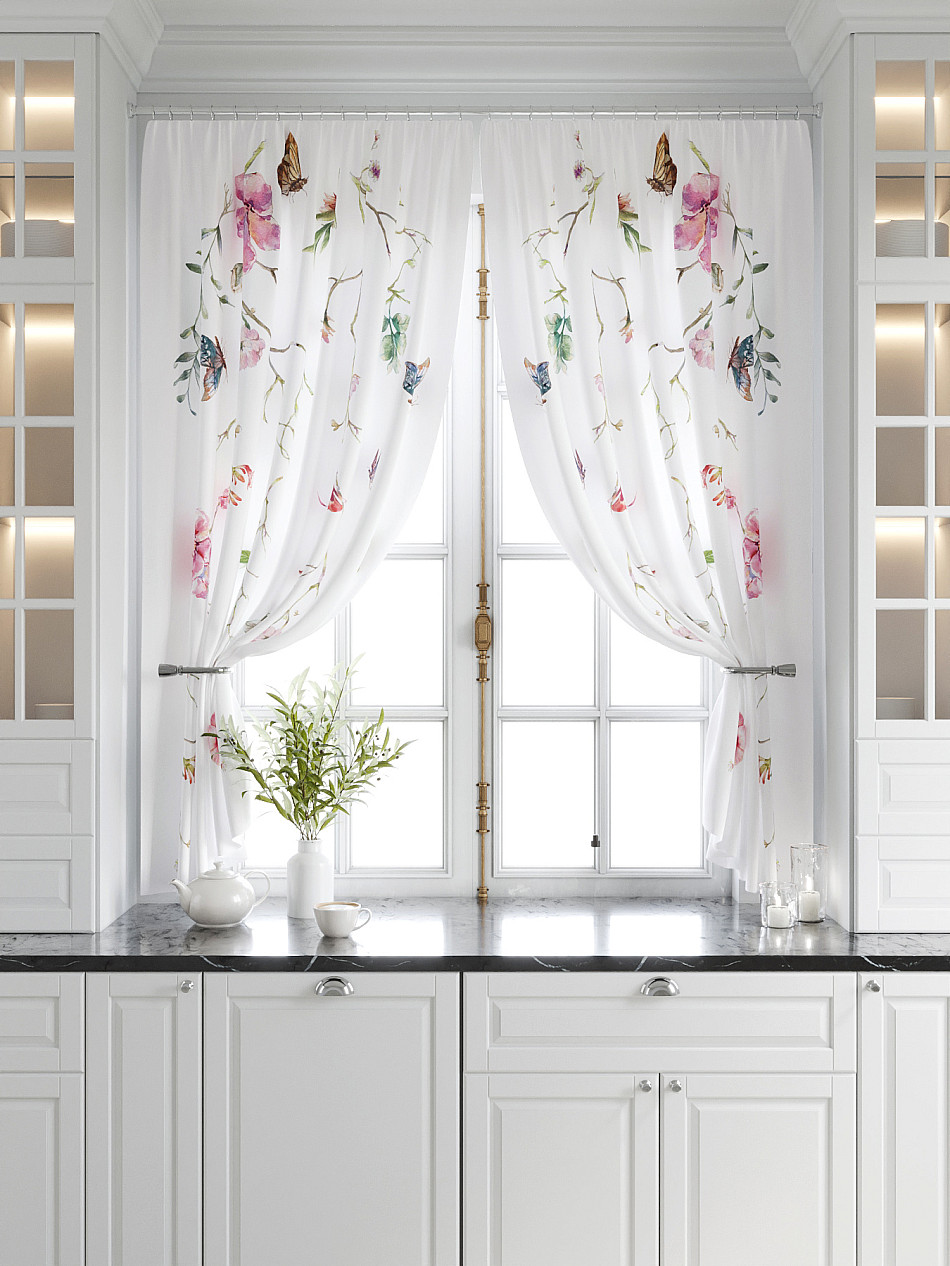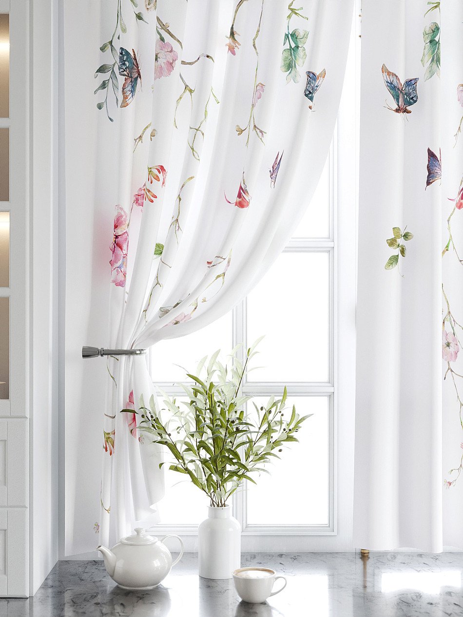 Кухонный Растения Фото принт С бабочкамиАксессуары для оформления штор: