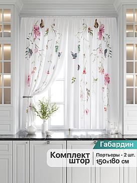 Комплект штор из легкой портьерной ткани (габардин) оформлен печатным рисунком. Печатный рисунок дает широкие возможности обновить интерьер фактически нет требуя ремонта за счет огромного выбора. Ткани с печатным рисунком безопасны и не содержат токсичных веществ. Не смотря на то что, материал легкий, он имеет высокую плотность, мало загрязнятся и не требует особого ухода даже после стирки, что важно для кухонных занавесок. Шторы не выцветают, не растягиваются, превосходно драпируются, образуя струящиеся складки. Прекрасное решение для создания красоты и уюта с помощью уникальных дизайнов.